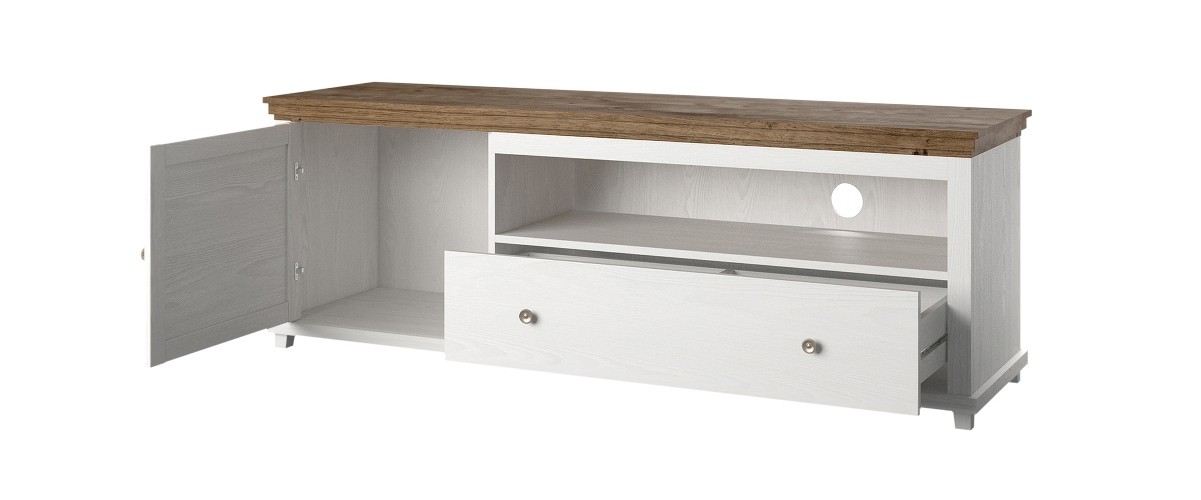 Regal EVORA ima veliko odlagalno površino na katero lahko postavite televizor in ostale stvari, ki bi vam dnevno sobo naredile lepšo. Vsebuje tudi veliko shranjevalne površine kamor lahko shranite družabne igre, ko si zaželite skupnega časa z družino. Na voljo v barvi abisko pepel.