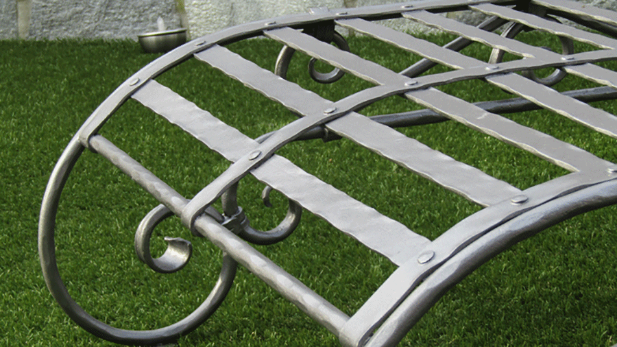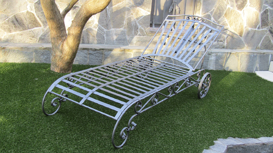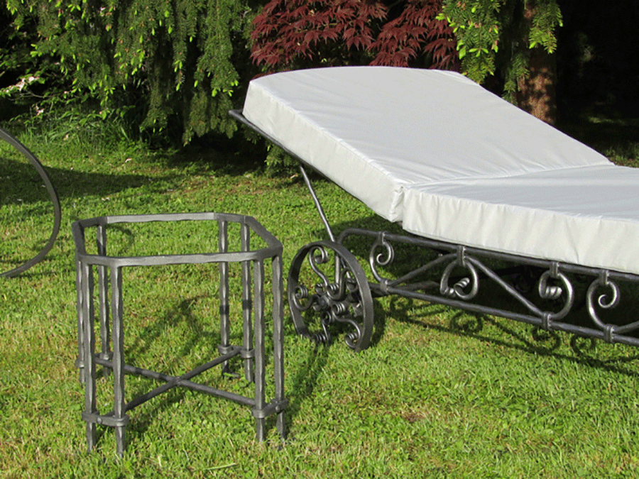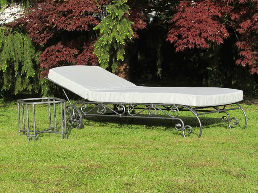 Ročno kovan oblazinjen ležalnik na kolesih z nastavljivim naslonom je ležalnik blagovne znamke Private Joy Space. Je proti-korozijsko zaščiten ter barvan v grafitno sivem tonu. Zaradi lažjega premikanja smo ga postavili na dvoje koles. Za udobje poskrbi oblazinjenje iz spominske pene debeline 10 cm, zaščiteno z oblačilom iz srebrne vodo-odbojne poliestrske tkanine, ki jo zlahka očistimo z mokro krpo in je odporna na UV žarke. Ležalnik odlikuje po višini nastavljivo naslonjalo. Lepo se poda intimnim kotičkom vašega vrta, užitke udobja pa zagotavlja tudi postavitev ob notranjih ali vrtnih bazenih in savnah.
