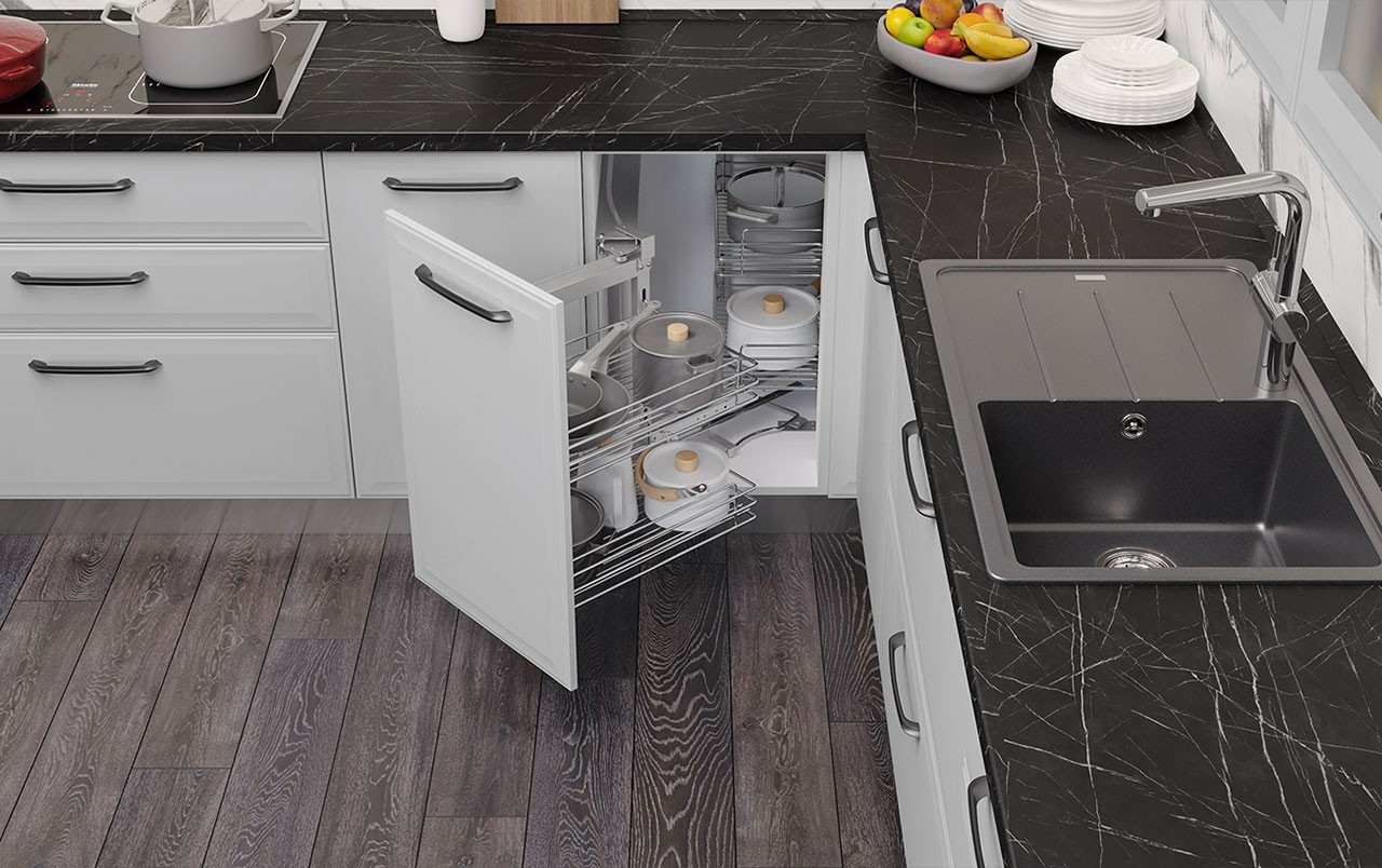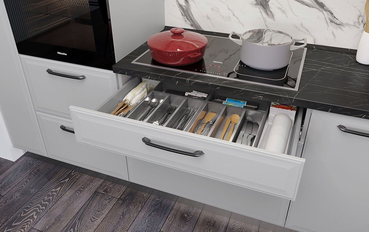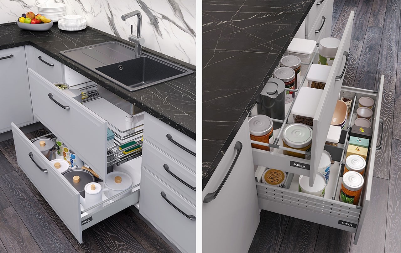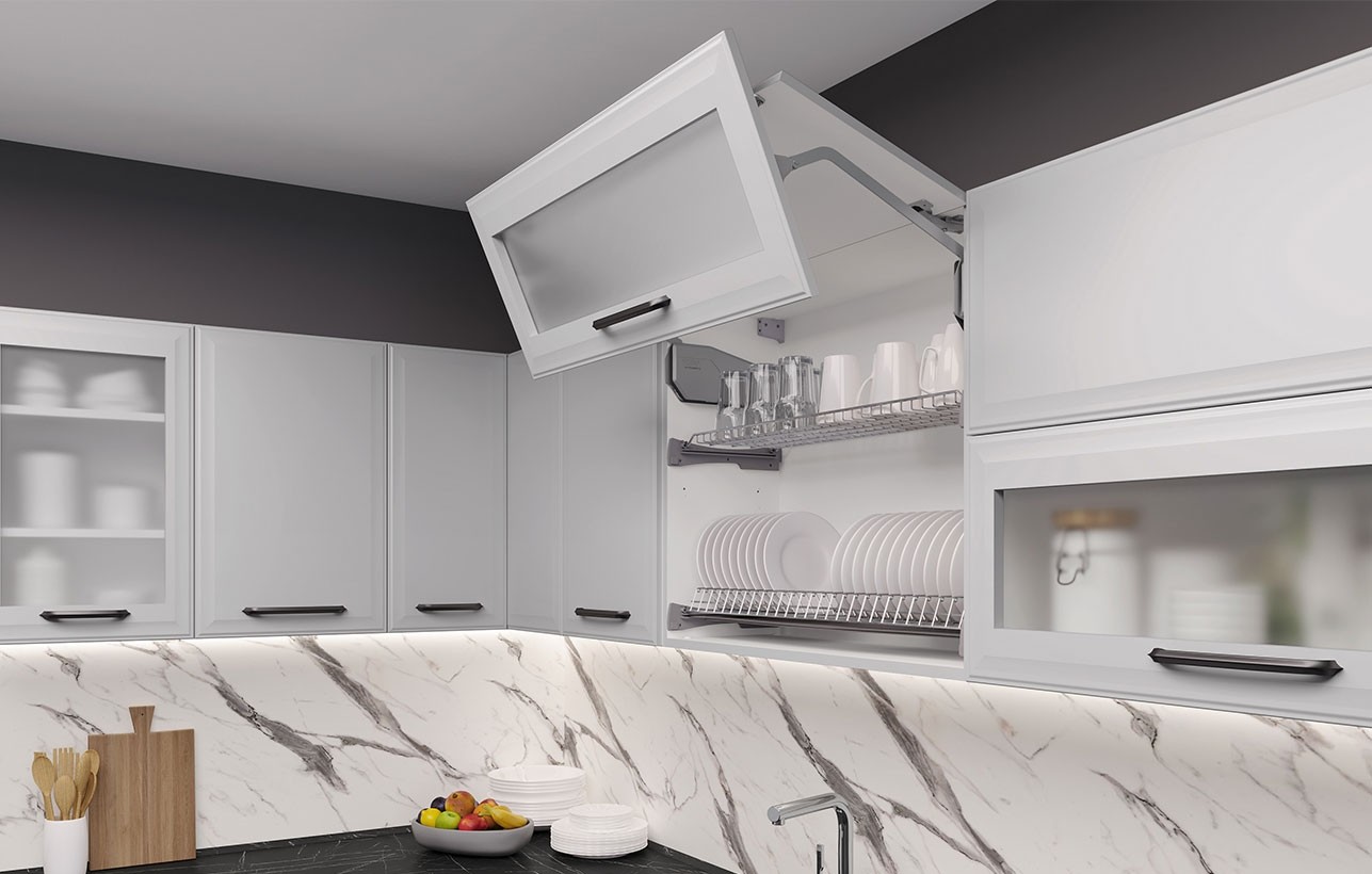 Vsi elementi kuhinje EVIA imajo funkcijo tihega zapiranja, ki omogoča lažjo vsakodnevno uporabo ter prepreči prehitro obrabo. UV lak, s katerim so premazane fronte vseh elementov, je 4x močnejši od klasičnega laka, zato bo kuhinja dolgo časa izgledala kot nova in se na njej ne bodo poznale razne praske in poškodbe.
