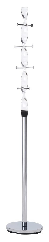 Obešalnik Kiren s kromirano jekleno in akrilno konstrukcijo. Sodobna in prestižna zasnova, višina 180 cm ter premer osnove 30 cm.
