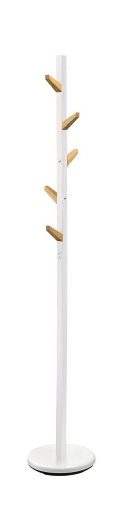 Samostoječ obešalnik Malin s kovinskim in lesenim zaključkom, na voljo v beli in črni barvi. Klasičen obešalnik z naravnim pridihom za vsak prostor.