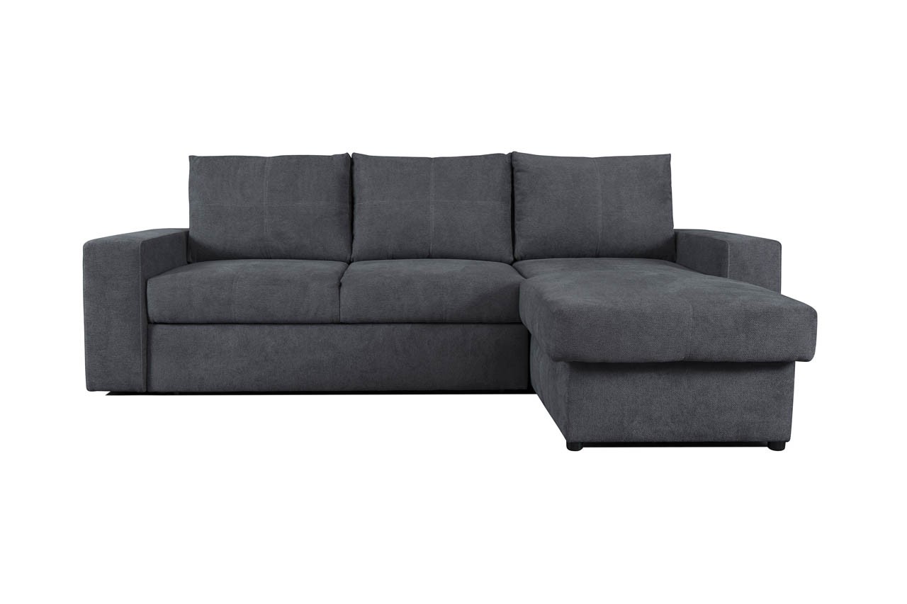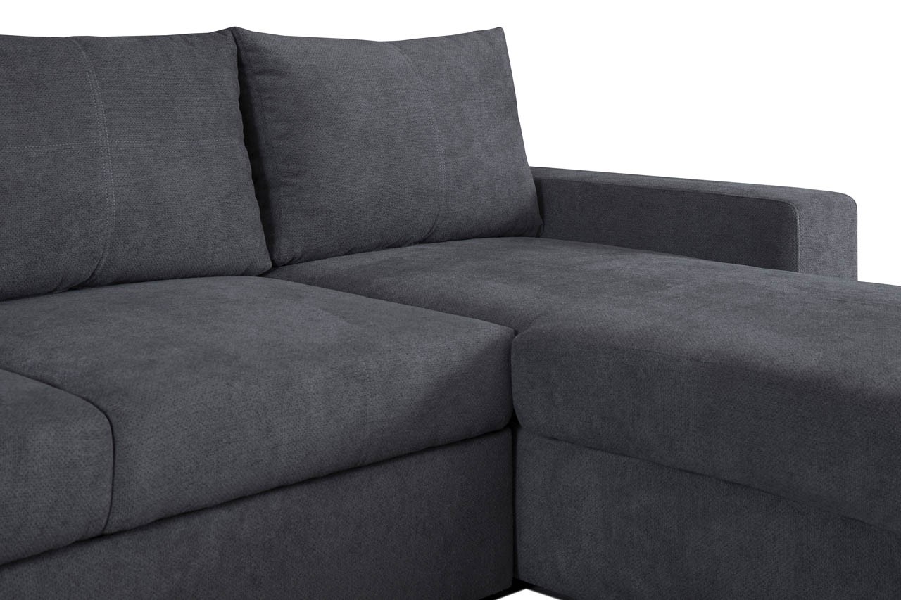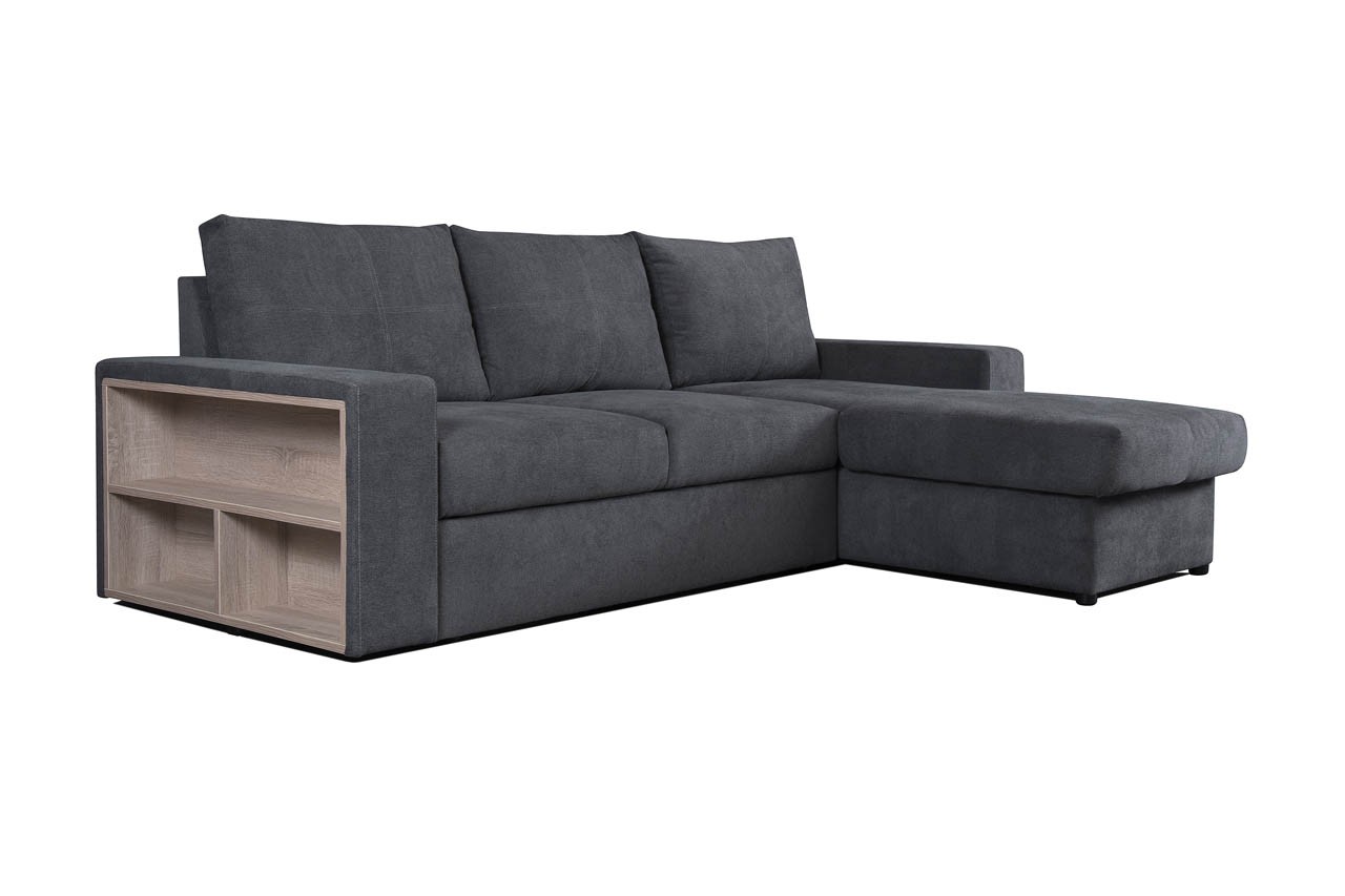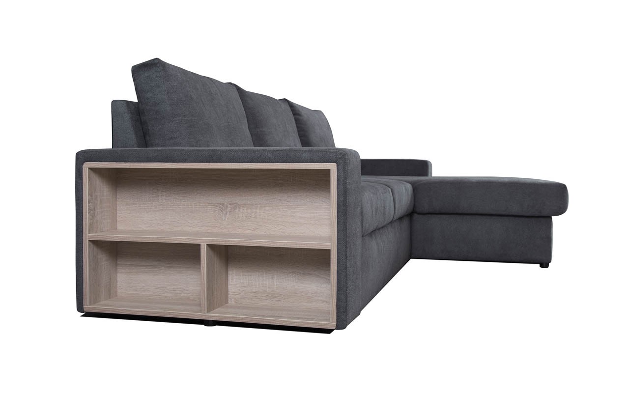 Sedežna garnitura ALTO je modernega izgleda, na voljo v temno sivi barvi, ki se bo lepo podala v vašo dnevno sobo. Hrbtišče ima več blazin, ki se lahko po želji tudi snamejo. Sedišče je opremljeno s cik cak vzmetmi in pokrito z udobno tkanino. Ena od zanimivejših funkcij je oblazinjen zaboj na eni strani, ki služi za shranjevanje predmetov, na drugi strani pa odprt prostor s poličko. Oboje se lahko montira po želji na levo ali desno stran garniture.