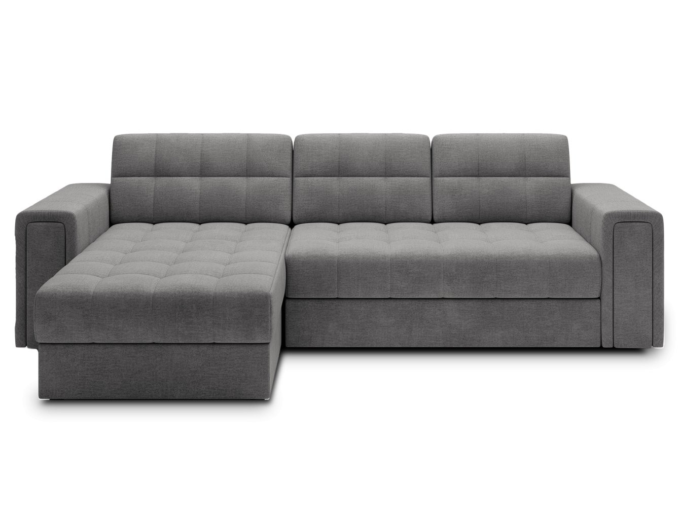 Ena izmed ključnih prednosti sedežne garniture Blenvi je njena praktična spalna funkcija tipa Delfin, ki omogoča enostavno preoblikovanje v udobno ležišče. Poleg tega je opremljena z enim prostorom za shranjevanje posteljnine, kar zagotavlja dodatno funkcionalnost in pomaga ohranjati red v vašem domu. Ker je hrbtišče v celoti oblazinjeno, lahko sedežno garnituro postavite kamorkoli v prostoru.
