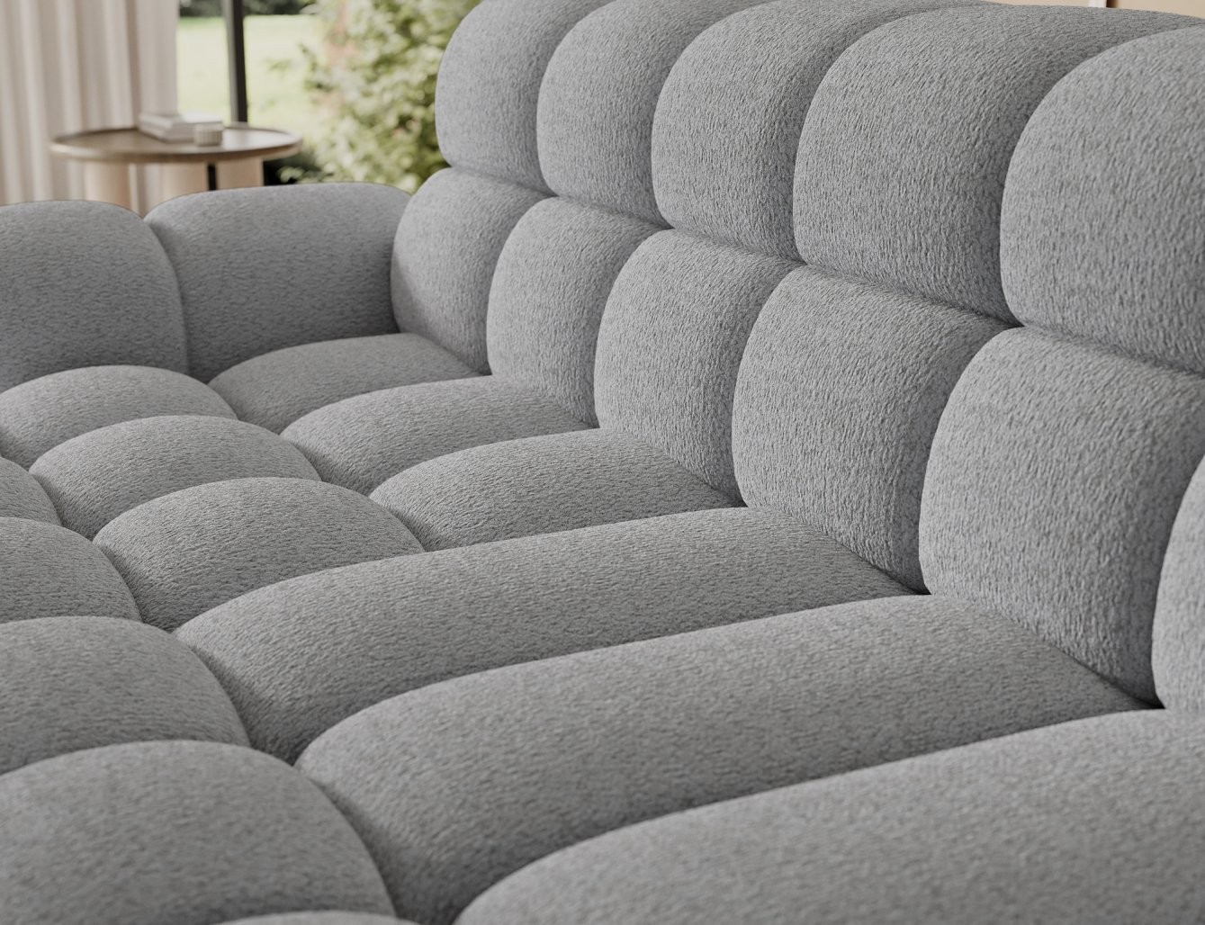Z dimenzijami 283x98x165 cm ponuja Ceedro dovolj prostora za sprostitev in druženje. Je tudi izjemno praktična, saj vključuje spalno funkcijo, kar jo naredi idealno kot dodatno ležišče za goste. Črni plastični drsniki za pohištvo poudarjajo njen moderen in lahek značaj ter olajšajo premikanje po tleh. Sedežna garnitura Ceedro je odlična izbira za tiste, ki iščejo kombinacijo vrhunskega dizajna, udobja in praktičnih rešitev za vsakodnevno uporabo.
