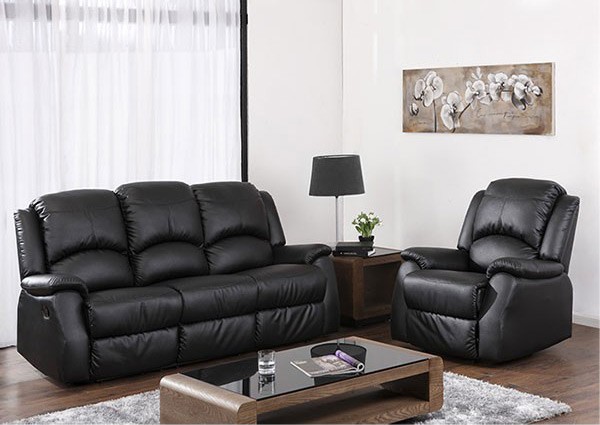 Sedežna garnitura Esther 3RR+2RR je 2 delni set izjemno udobnih sedežnih garnitur oblazinjenih v umetno usnje črne barve. Set vsebuje trosed in dvosed. Relax mehanizmi na sedežih vam omogočajo nastavljanje položaja sedenja in tako dodatno povečajo ugodje pri sedenju. Trosed (zunanja sedeža) in dvosed vsebujeta 2 relax mehanizma. Relax mehanizem sprožite z ročko na levi oziroma desni strani posameznega elementa.