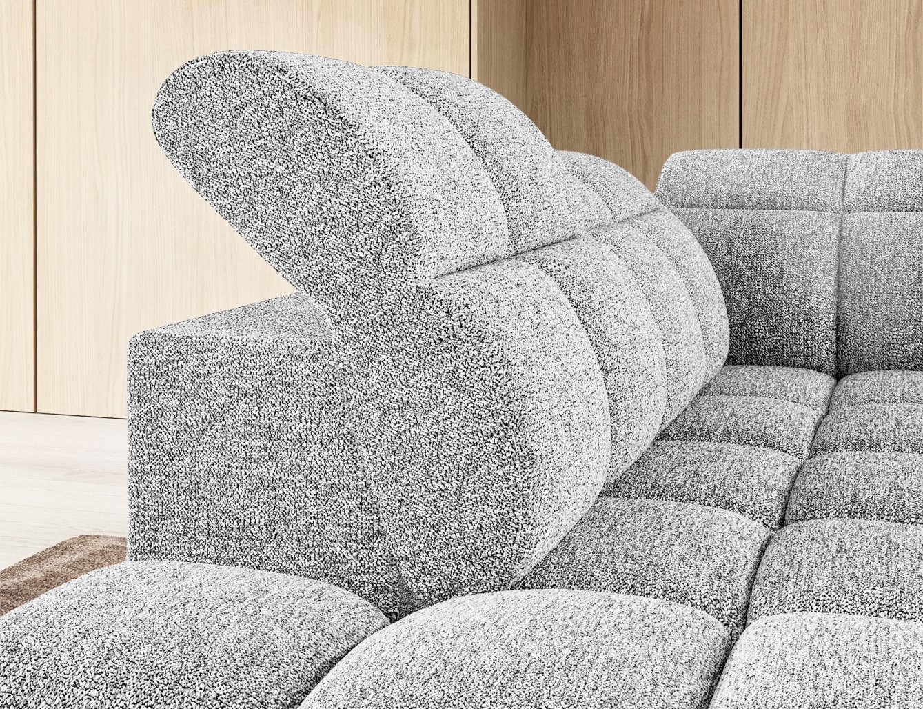 Sedežna garnitura Falconn je eleganten in moderen kos pohištva v obliki črke L, ki združuje stilsko zasnovo z izjemnim udobjem. Zaradi svoje električno raztegljive sedalne površine omogoča fleksibilno prilagajanje prostora, s čimer ustreza vašim individualnim potrebam. Ta sedežna garnitura je popolna izbira za tiste, ki cenijo funkcionalnost, sodoben dizajn in vrhunsko udobje za sprostitev v svojem domu.