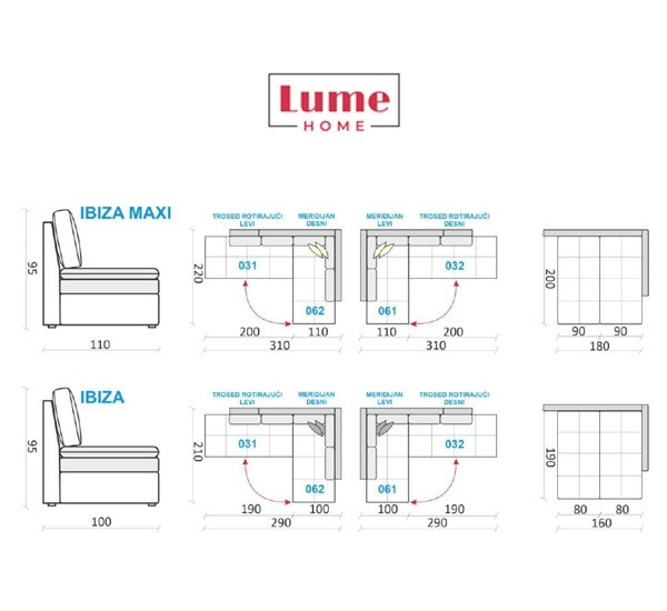 Sedežna garnitura Ibica je izdelana v Evropi in predstavlja odlično razmerje med ceno in kakovostjo- kar je zaščitni znak blagovne znamke Lume Home. Zahvaljujoč premišljenim detajlom in natančni izdelavi je idealna izbira za vse, ki si želijo udobno in estetsko dovršeno dnevno sobo.