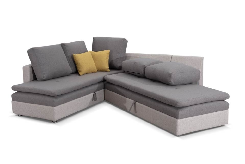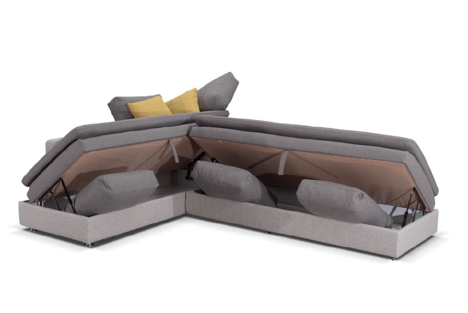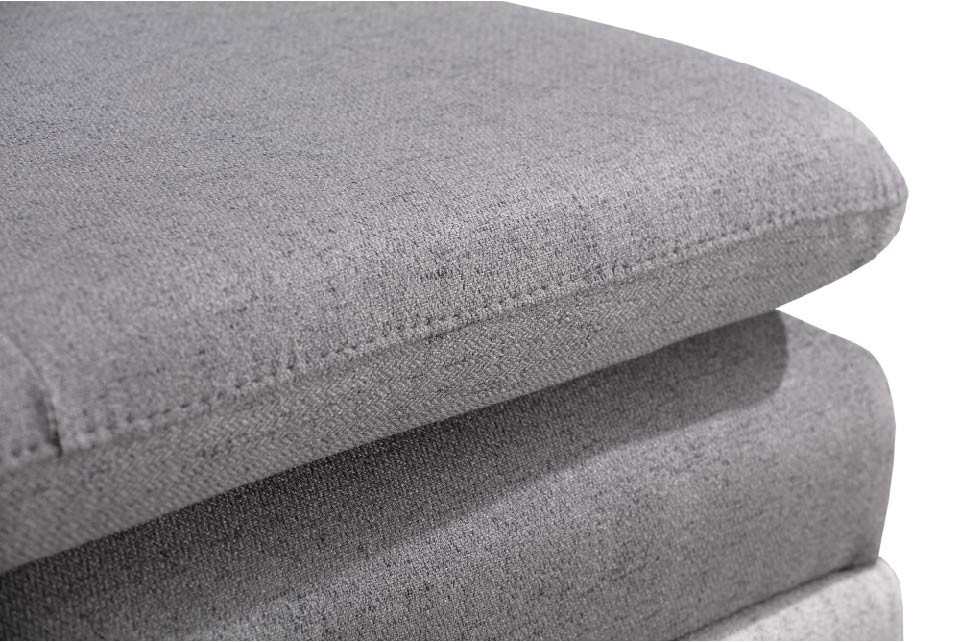 Šivi so v barvi prevleke, okrasni robovi pa poudarjajo prefinjeno obliko sedežne. Garnitura nima izvlečnega ležišča, kar omogoča bolj stabilno in čvrsto sedenje. Plastične nogice v kovinsko srebrni (metalik) barvi so že montirane in elegantno dopolnjujejo celoten videz garniture. Na internetu imamo prikazanih samo nekaj možnosti postavitev, materialov in barv. Za naročilo sedežne po meri nas kontaktirajte po telefonu ali e-mailu.