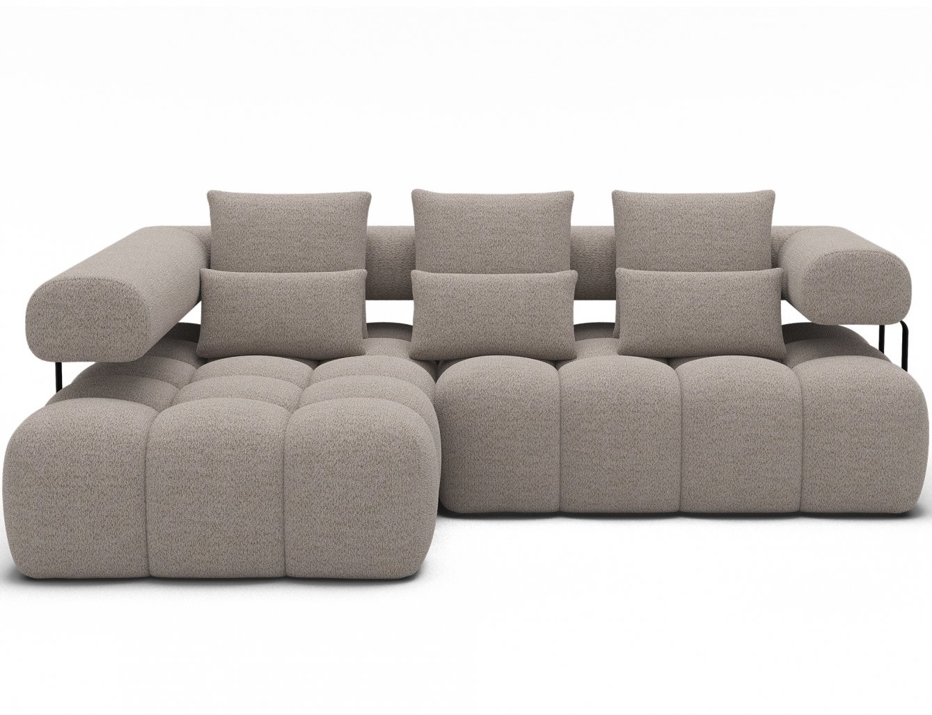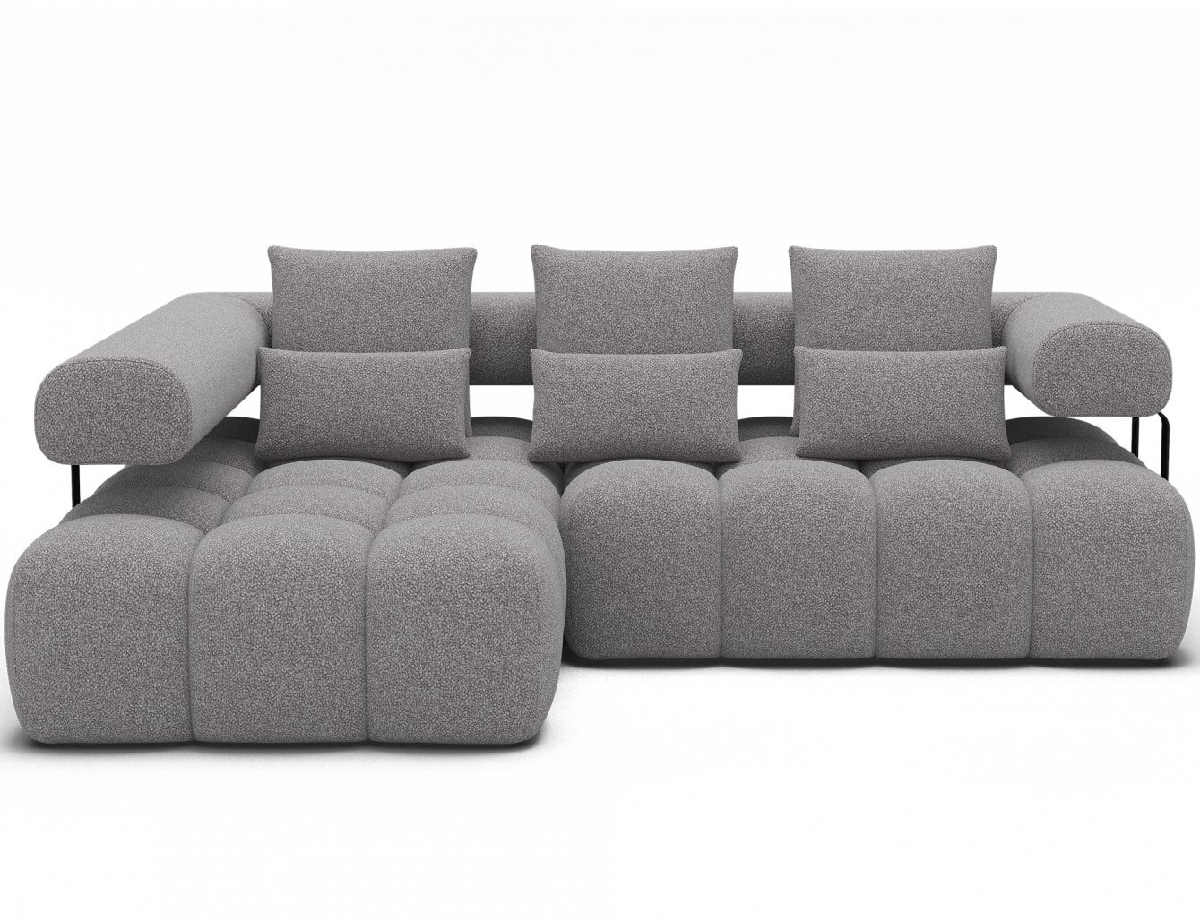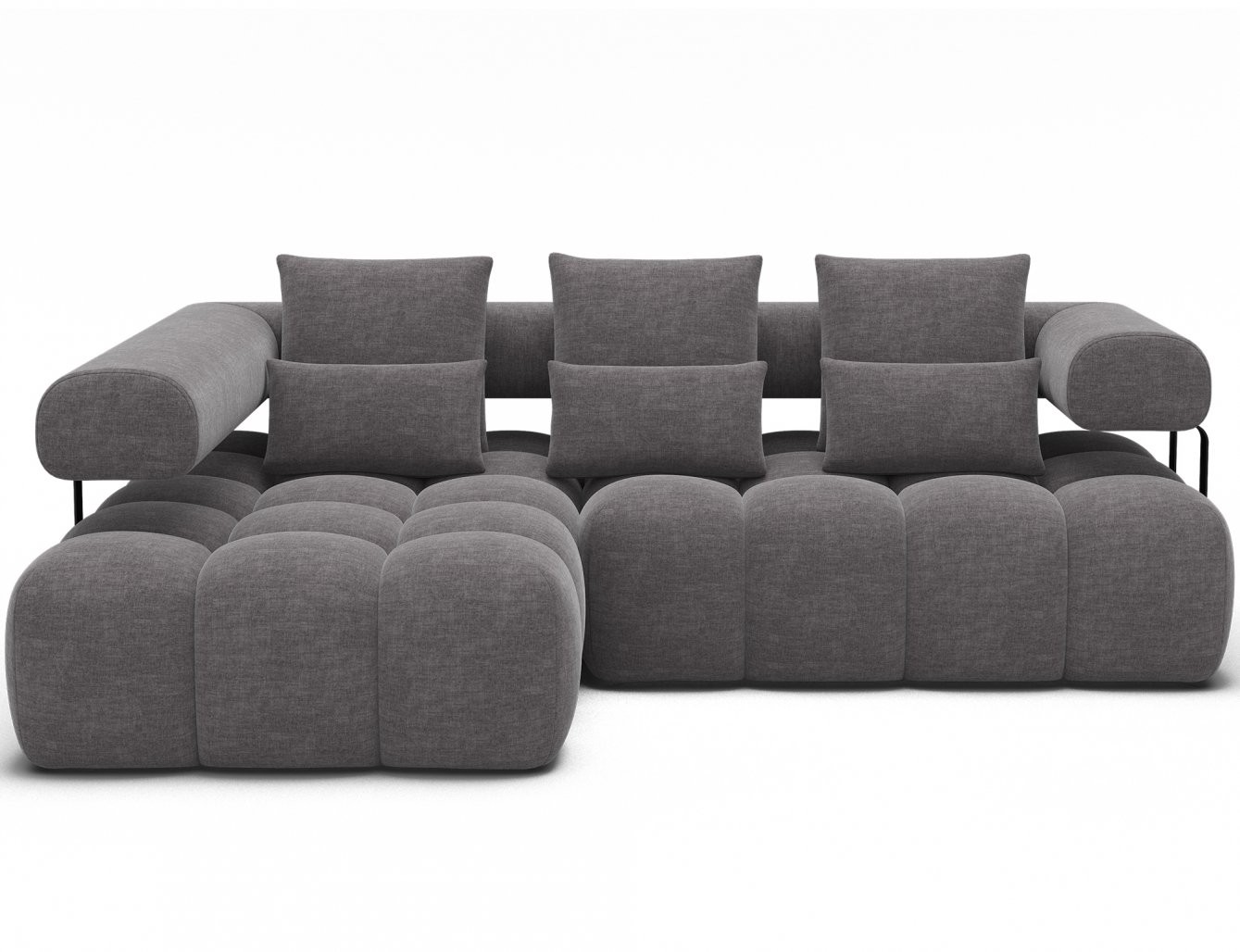 Minimalističen značaj sedežne garniture poudarjajo črne plastične noge, ki zaokrožujejo celoten moderen videz. Levvi je idealna rešitev za tiste, ki iščejo elegantno kotno sedežno garnituro z možnostjo spanja, ki se popolnoma zlije z vsakim sodobnim ambientom. Izbirate lahko tudi med levo ali desno orientacijo, da se popolnoma prilega vašemu prostoru.