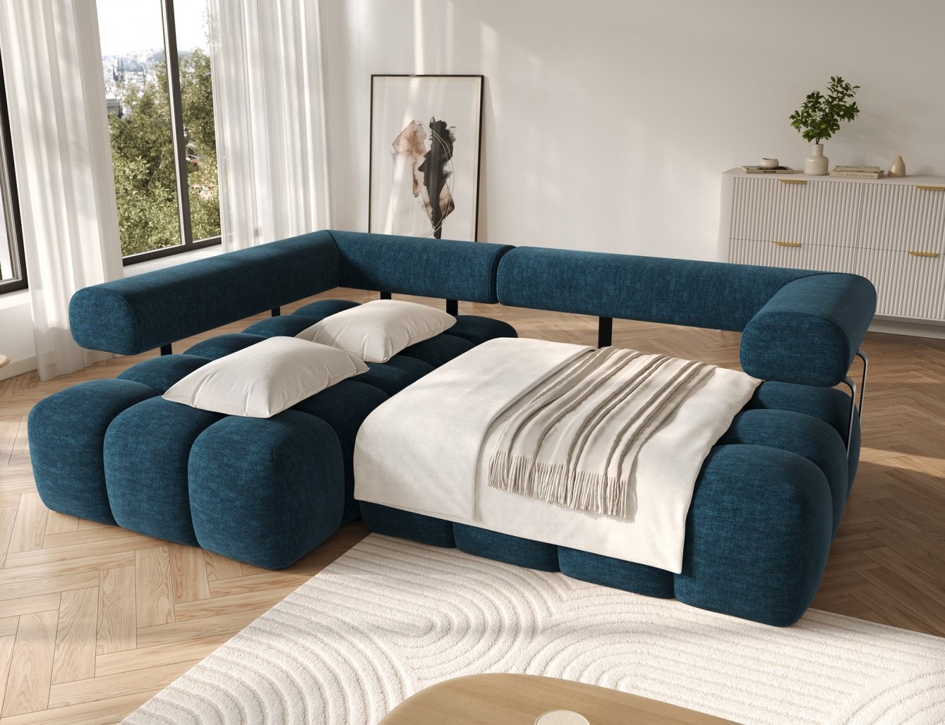 Ena ključnih lastnosti sedežne garniture Levvi je njena praktična funkcija spanja, ki omogoča hitro preobrazbo v udobno ležišče za vaše goste. Mehanizem razklopa je električni sedežni podaljšek, kar zagotavlja enostavno in hitro uporabo. Zahvaljujoč popolnoma oblazinjenemu hrbtišču, je kos pohištva mogoče prosto postaviti kjerkoli v dnevni sobi, ne da bi ga bilo treba nasloniti na steno, kar ponuja večjo prilagodljivost pri notranjem oblikovanju.