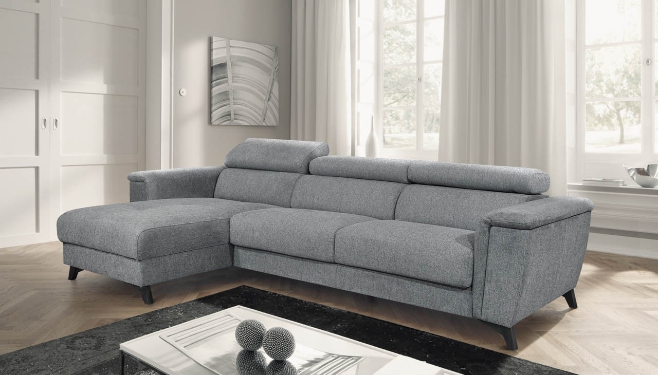 Kotna sedežna garnitura MARCIS je elegantna in na voljo v sivi barvi, ki se odlično poda v vsak dnevni prostor. Sedežna je v celoti oblečena v tkanino, sedišče pa ima napolnjeno s peno, ki omogoča sprostitev za katero ne boste želeli, da se konča. Izvlečno ležišče je velikosti 190x140 cm. Maksimalna obremenitev je 100 kg na posamezno sedišče. Sedežna stoji na lesenih nožicah v črni barvi.