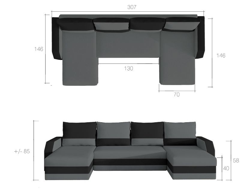 Sedežna garnitura MARION ima veliko ležišče velikosti 268x125 cm, ki bo vašim gostom nudil več kot dovolj prostora za udoben spanec. Ima tudi priročen predal za shranjevanje v katerega lahko pospravite dodatne vzglavnike, odeje in posteljnino ter s tem ohranite več prostora v svojih omarah. Sedežna je univerzalne postavitve, kar pomeni da jo lahko montirate po želji na levo ali desno stran.