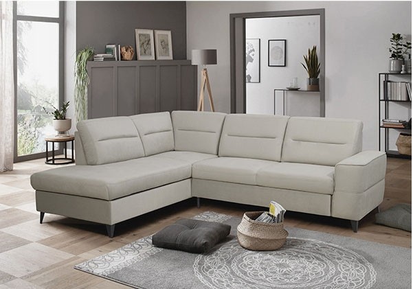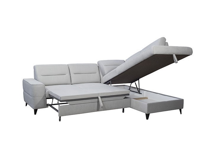Če želite vrhunsko sedežno garnituro elegantnega in stilskega dizajna, potem je sedežna garnitura NIMA odlična izbira za vas. Oblazinjena je v ekološko in vodoodporno tkanino, ki je mehka na otip in ima izgled umetnega usnja. Za dodatno funkcionalnost poskrbita izvlečno ležišče dimenzije 130x204 cm namenjeno občasni uporabi, ter predal za shranjevanje v katerega lahko pospravite posteljnino in blazine. Na voljo je v levi in desni postavitvi, tako da se bo maksimalno prilagodila vsakem prostoru.