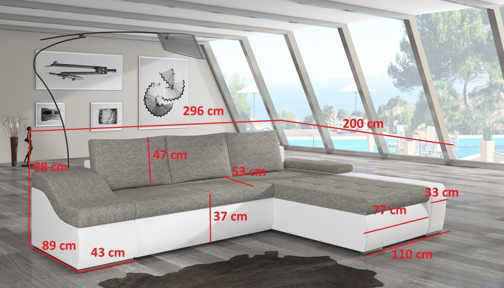 Sedežna garnitura ONTARIO je izjemno funkcionalna saj maksimalno izkoristi vsak centimeter zavzetega prostora. Nudi vam priročen predal za shranjevanje v katerega lahko pospravite posteljnino, vzglavnike, odeje ali druge malenkosti in s tem ohranite več prostora v svojih garderobnih omarah. Ima tudi ležišče dimenzij 122x225 cm, ki je izjemno priročno, če pričakujete goste.