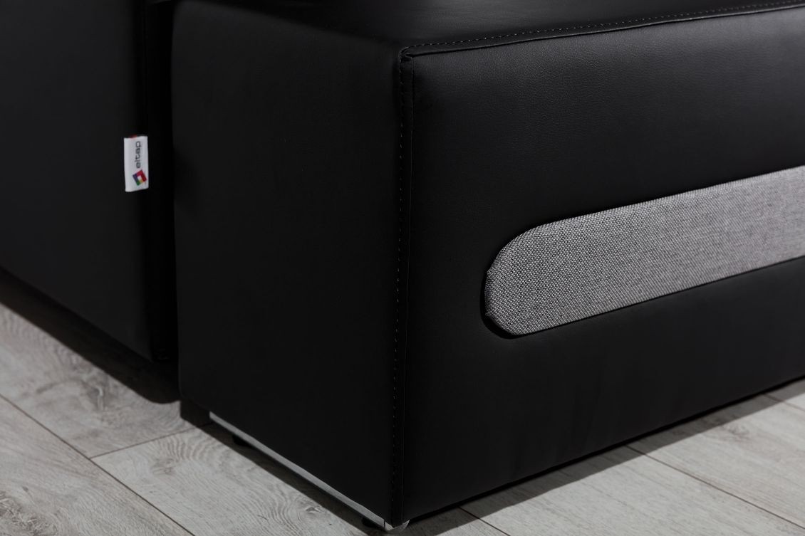 Privoščite svoji dnevni sobi moderno sedežno garnituro OTTAVIO, ki se ponaša z udobjem, kvaliteto in funkcionalnostjo. Sedežna je na voljo v kombinaciji udobne tkanine in elegantnega umetnega usnja, ki ustvari moderen videz garniture. Vsebuje ležišče in predal za shranjevanje, v katerega lahko pospravite posteljnino, vzglavnike in odeje, da boste vedno pripravljeni za nenapovedane goste.