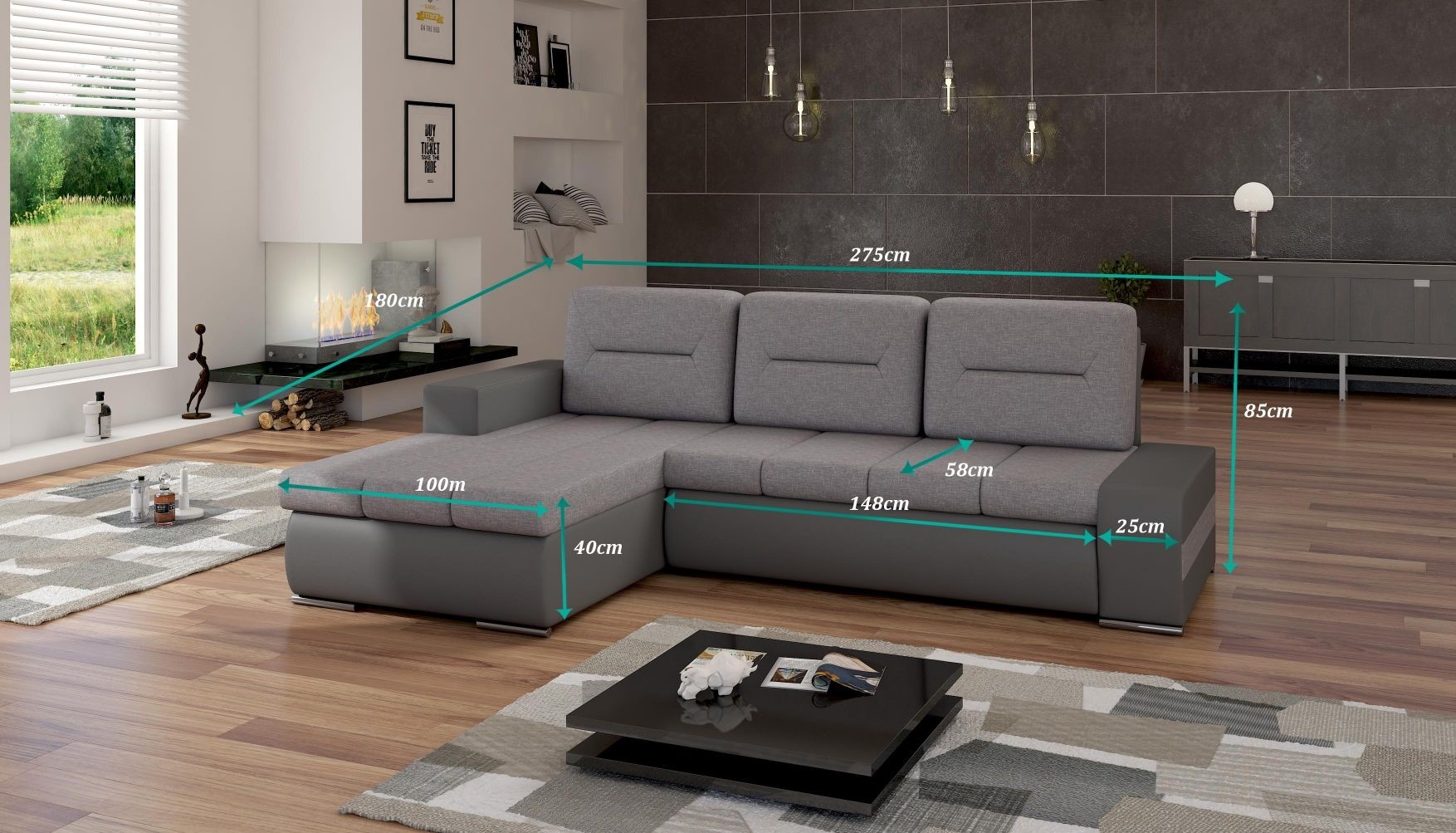 Sedežna garnitura OTTAVIO je izjemno funkcionalna, saj maksimalno izkoristi vsak centimeter porabljenega prostora. Vsebuje ležišče dimenzij velikosti 195x135 cm ter predal za shranjevanje v katerega lahko pospravite posteljnino, vzglavnike in odeje za vaše nenapovedane goste.