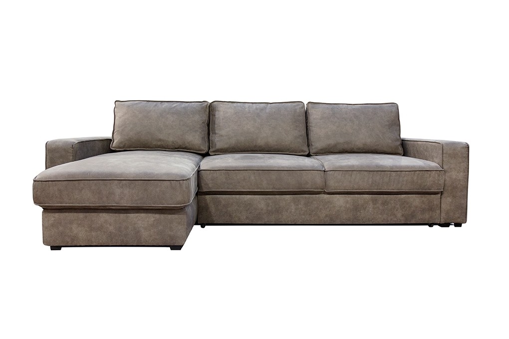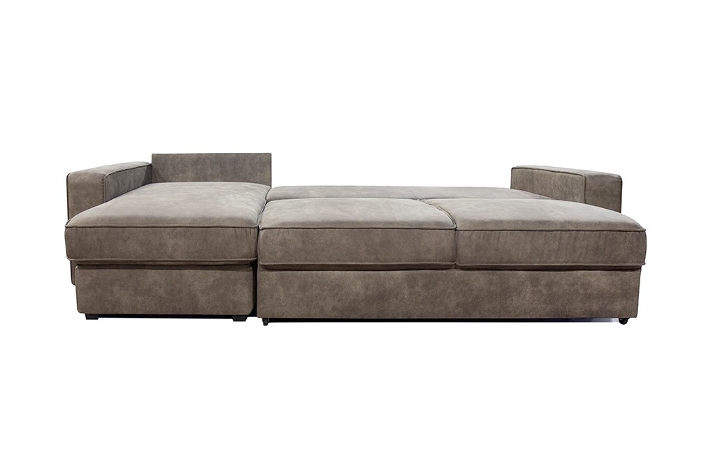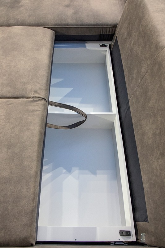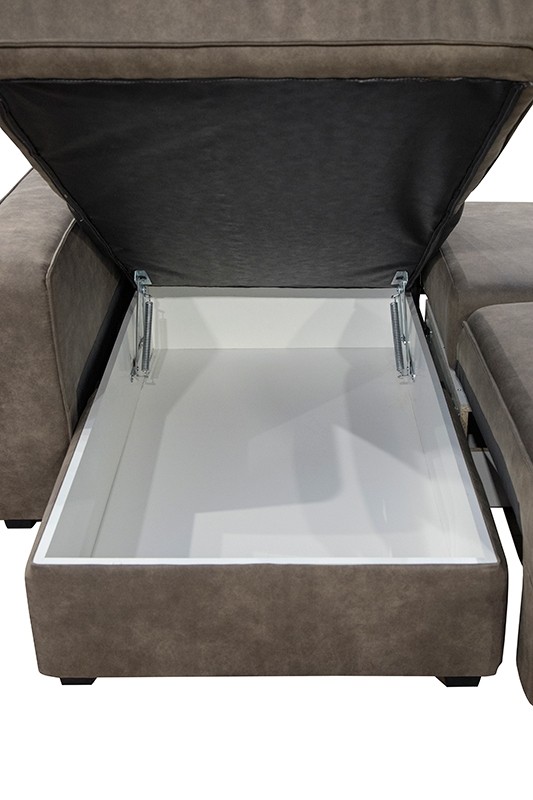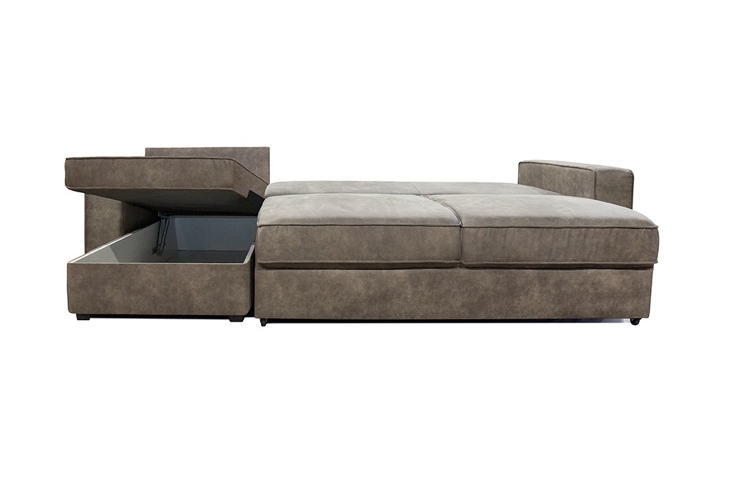 Sedežna garnitura SELMA je univerzalne postavitve, zato lahko podaljšani del namestite na levo ali desno stran in si sedežno prilagodite svojim željam in potrebam. V celoti je oblazinjena v udobno tkanino rjave barve, ki vam omogoča udobno sedenje v vseh letnih časih. Sedežna ima izvlečno ležišče in praktični zaboj za shranjevanje kamor lahko pospravite različne zadeve in tako ohranite čisto in organizirano dnevno sobo.