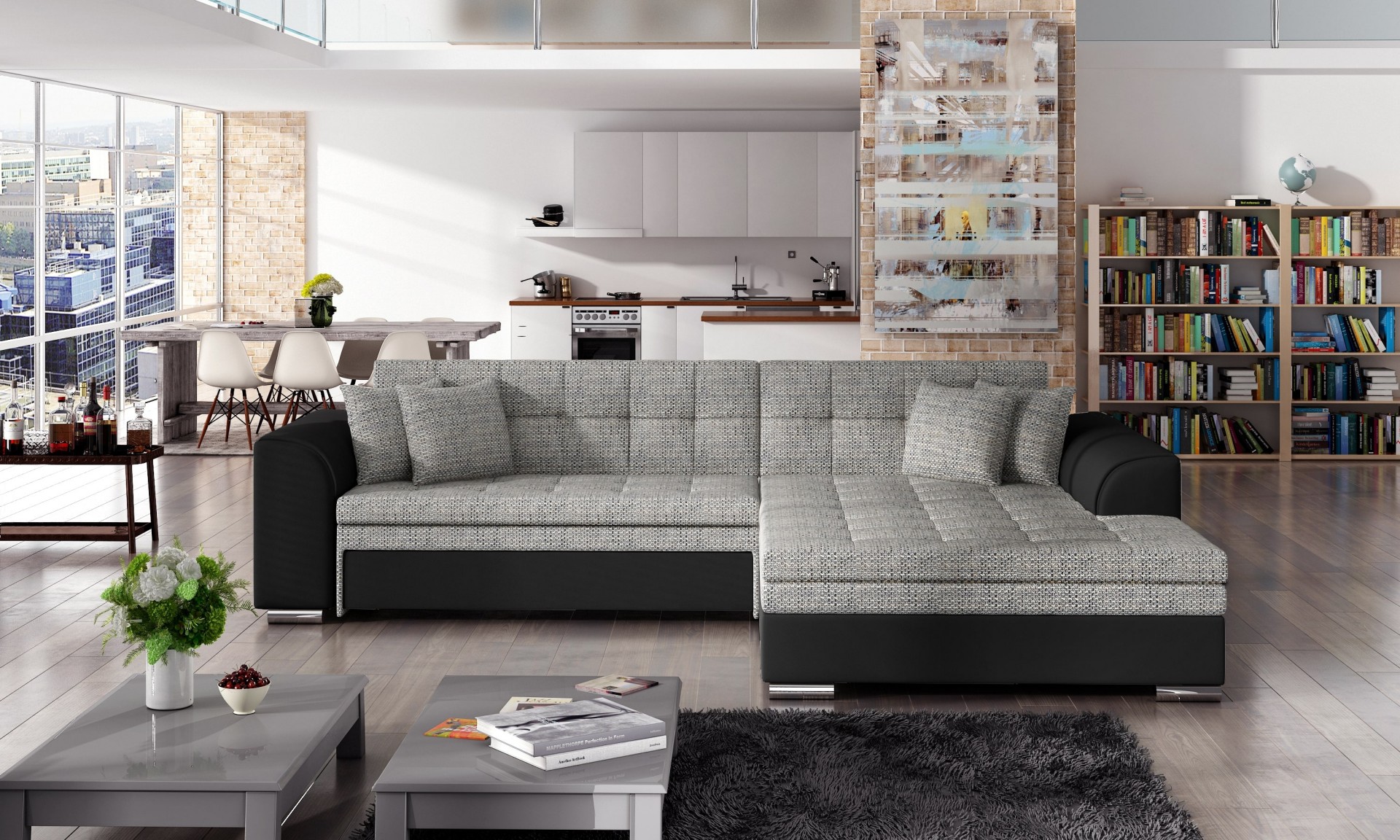 Opremite dnevno sobo s prostorno sedežno garnituro Sorento, ki nudi dovolj prostora za vso družino! Na voljo je v nevtralni kombinaciji sive in črne barve, ki izgleda odlično v vsakem domu in se enostavno kombinira z drugimi barvami. Vsebuje tudi priročno izvlečno ležišče, tako da boste gostom lahko ponudili udobno ležišče za miren in kvaliteten spanec!