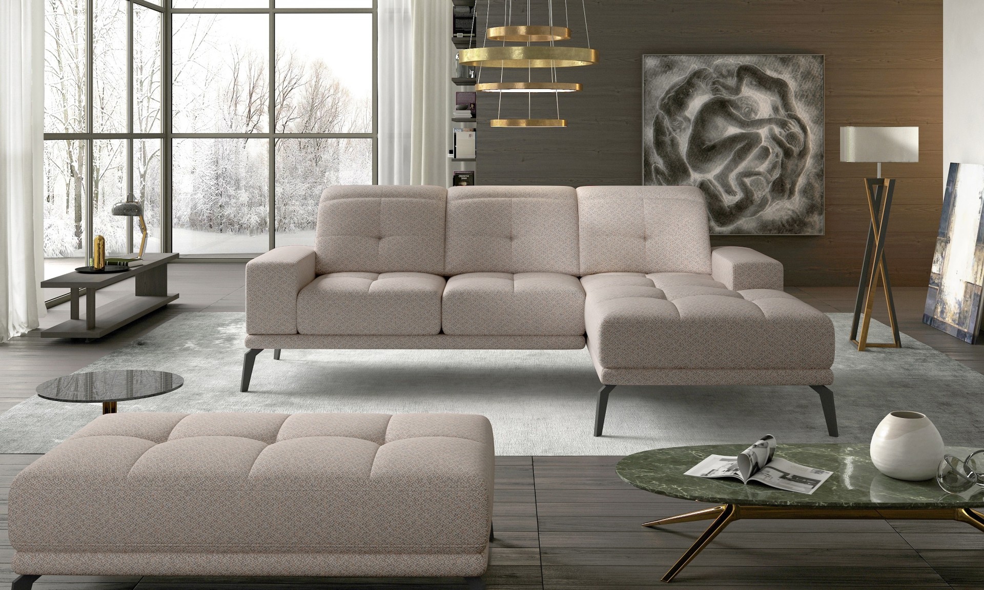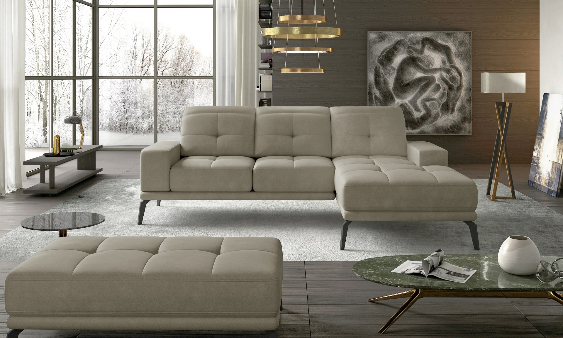 Sedežna garnitura Torrense je izdelana iz kombinacije kakovostne pene in vzmetenja, ki poskrbita za maksimalno udobje med sedenjem, prav tako pa pripomoreta k daljši življenjski dobi vaše nove sedežne. Poleg udobja se ponaša še z minimalističnim videzom, ki modernizira vsako dnevno sobo in v njej ustvari prijeten ambient za druženje in počitek.