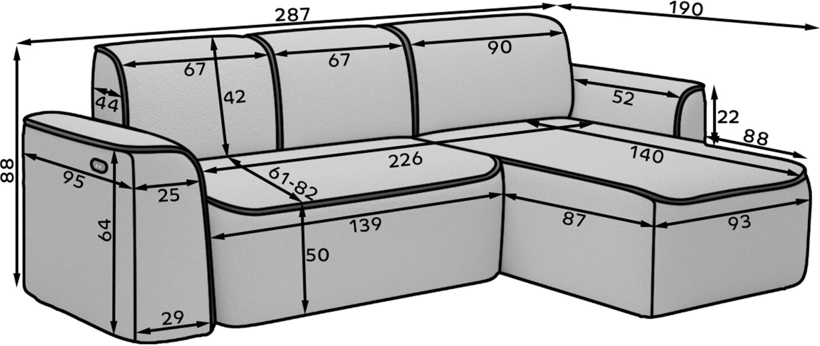 Poleg vrhunskih materialov je sedežna garnitura Ume opremljena tudi z elektronsko izvlečnim sedežem, kar še poveča udobje in funkcionalnost uporabe. Z električnim mehanizmom lahko enostavno prilagodite položaj sedeža svojim željam in potrebam. Ta inovativna rešitev naredi sedežno garnituro Ume odlično izbiro za tiste, ki cenijo udobje in sodobne rešitve v svojem interierju.