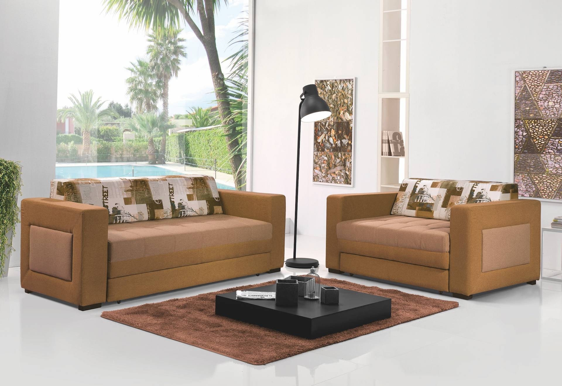 Prevleka garniture Moderna je na voljo v različnih takninah, eko usnju ali kombinaciji. Šivi so izvedeni v barvi prevleke za usklajen in prefinjen videz. Vsebuje mehanizem za izvlečno posteljo. Sedežna je na voljo v različnih postavitvah: trosed, dvosed in fotelj. Na internetu imamo prikazanih samo nekaj možnosti postavitev, materialov in barv. Za naročilo sedežne po meri nas kontaktirajte po telefonu ali e-mailu.