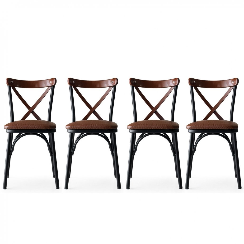 Z našo garnituro stolov lahko začutite čar tradicionalnega podeželskega sloga. Klasična zasnova s kombinacijo kovinskega okvirja, plastičnega hrbtišča in rjavega usnja iz pu usnja izžareva brezčasno eleganco. Brez težav dopolnjuje vsak notranji dekor, zato je odličen dodatek za vaš dom.
