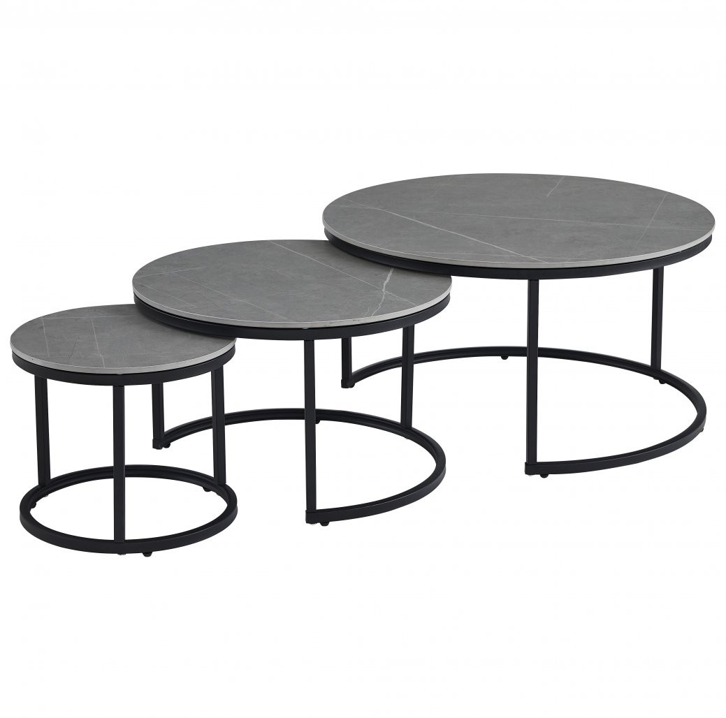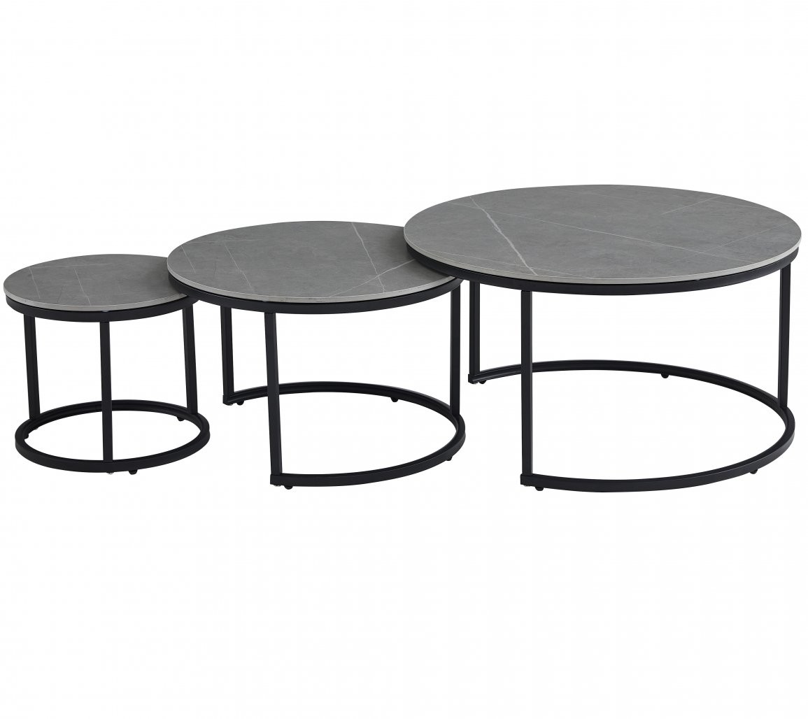 Set treh klubskih mizic MOAN 2 v elegantni sivi barvi je popolna izbira za vsak dom. Njihova inovativna zasnova omogoča enostavno shranjevanje in prilagodljivo uporabo.