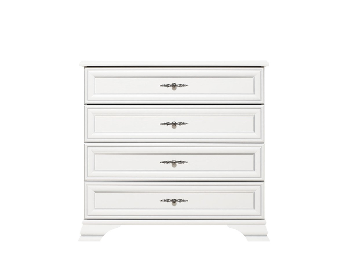 Širok predalnik KENTAKI vsebuje štiri predale kamor lahko shranjujete stvari za katere ni prostora. Vsebuje tudi odlagalno polico kamor lahko postavite okrasne izdelke. Predalnik je na voljo v beli barvi, ki modernizira in osvetli vaš prostor.