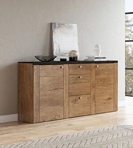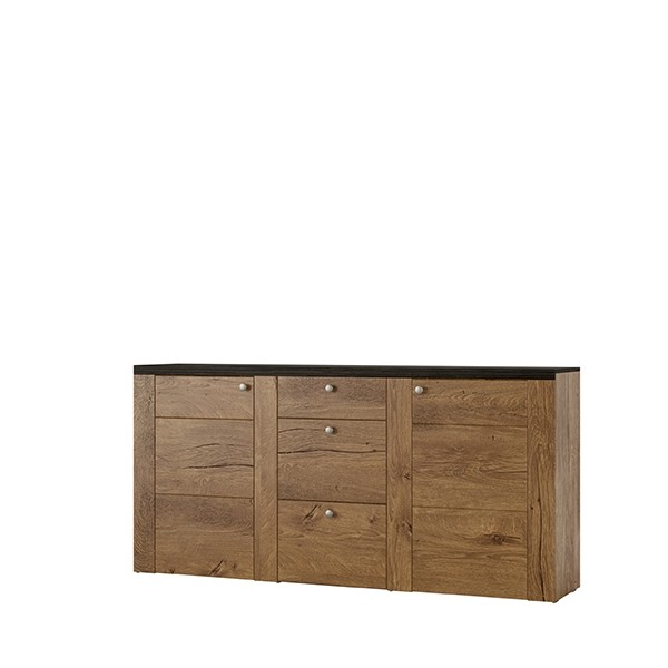 Široka komoda LARONA vsebuje dvoje vrat in tri predale v katere boste lahko shranili vaš nakit, družabne igre, knjige in ostale stvari, ki jih želite imeti na dosegu roke. Komoda je na voljo v barvi lefkas hrasta.
