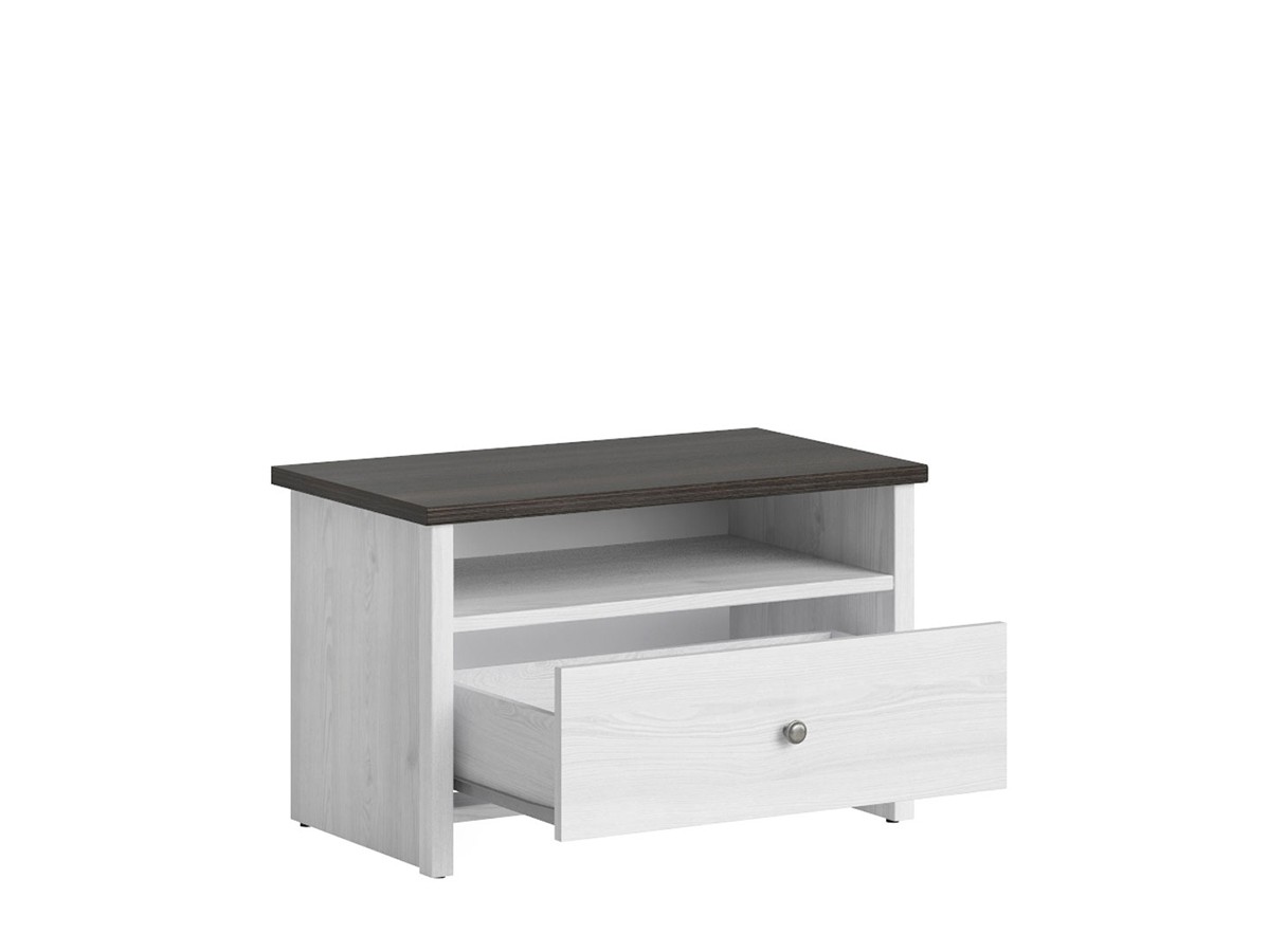 Široka tv-omarica PORTO vsebuje večji predal in odlagalno površino, ki vam bo omogočala, da nanjo odložite knjigo, budilko, nakit. Tv-omarica je na voljo v svetlo sivi barvi bora in je modernega izgleda, ki se odlično poda v vsako spalnico.