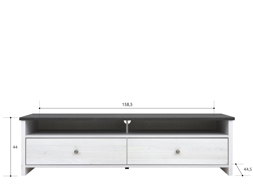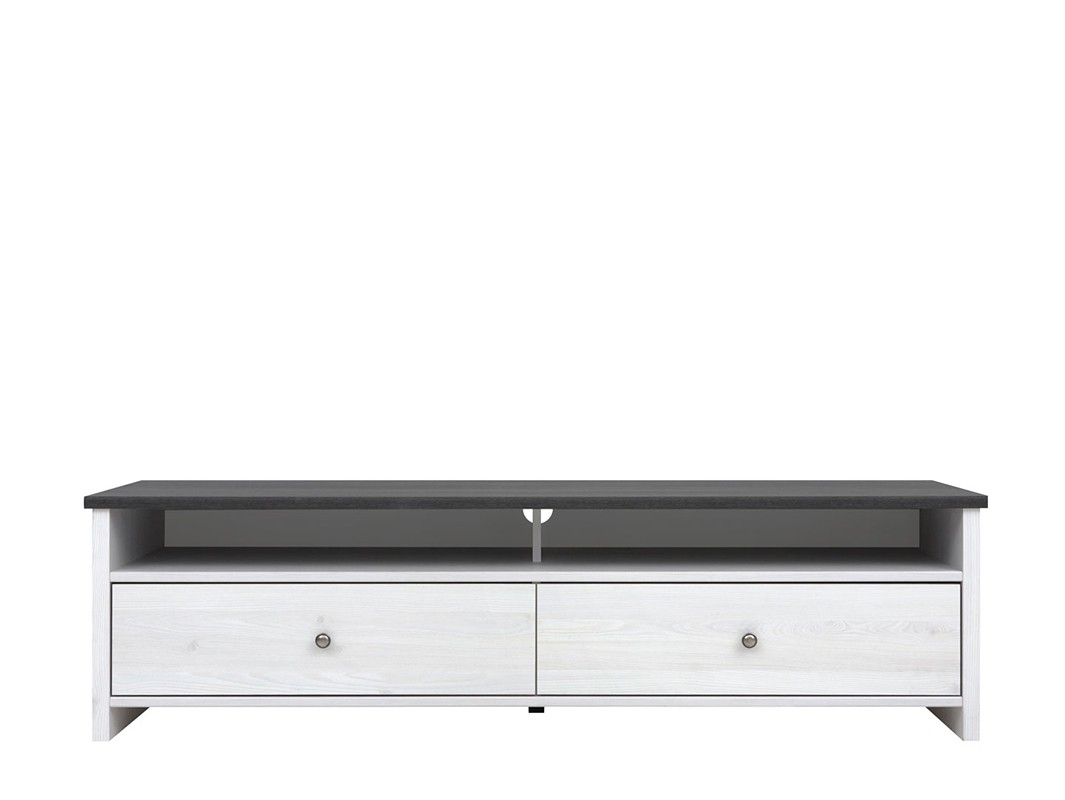 Široka tv-omarica PORTO vas bo navdušila s svojim preprostim dizajnom in prostornostjo izdelka. Tv-omarica vsebuje dva večja predala in dve polici za odlaganje vaših revij, knjig, družabnih iger ali elektronskih naprav. Na voljo je v svetlo sivi barvi bora, ki bo vašo dnevno sobo naredil elegantenjšo.