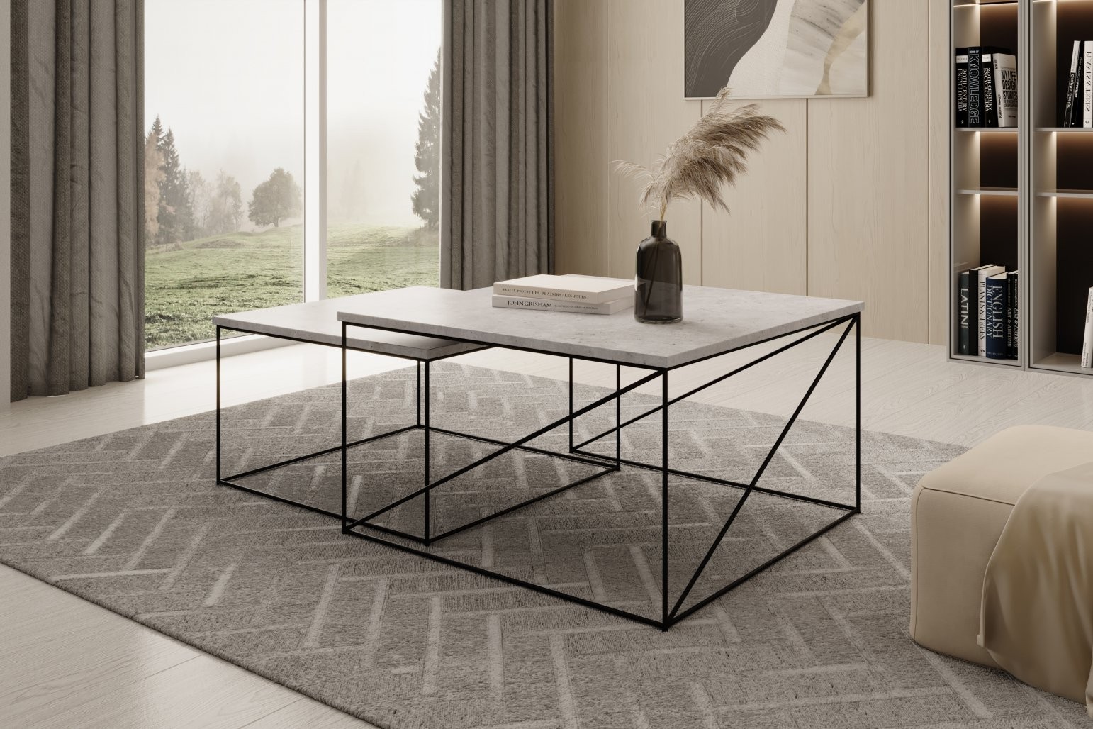 Žične noge dodajo mizi lahkoten, sodoben videz z industrijskim pridihom, kar jo naredi idealno za sodobne dnevne sobe.