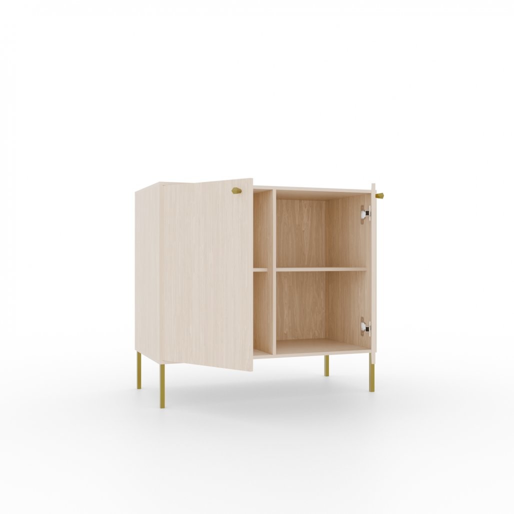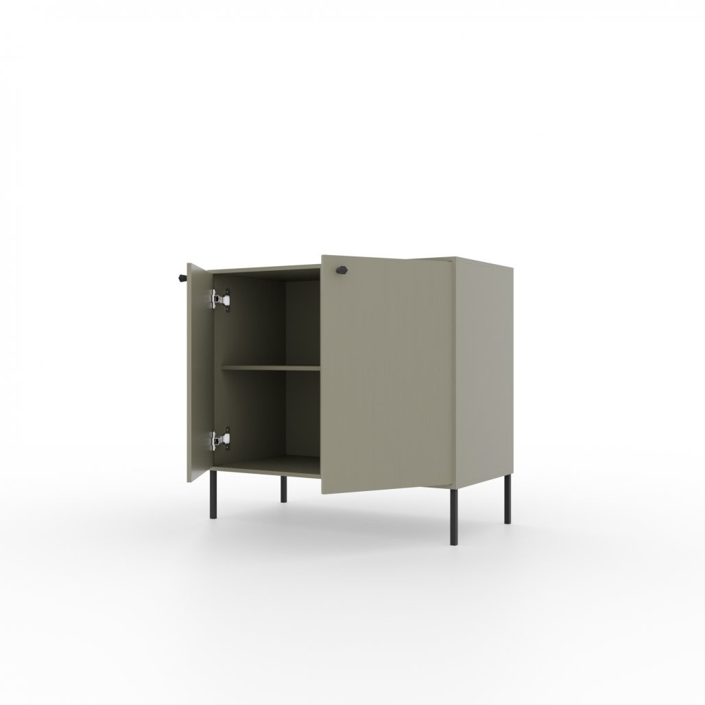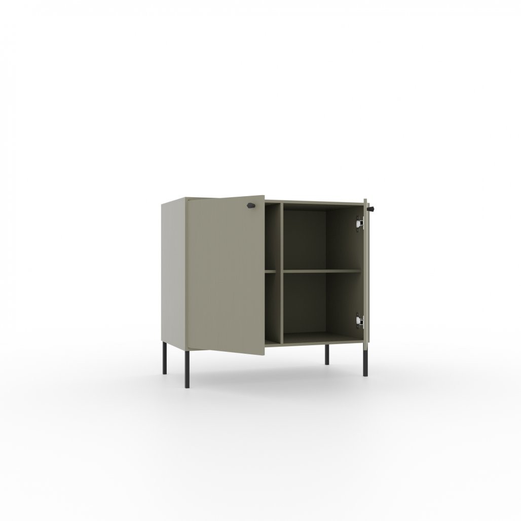 Komoda Tili z 2 vrati je eleganten in funkcionalen kos pohištva, ki se odlično prilega tako spalnicam kot dnevnim sobam. S sodobnim dizajnom in skrbno izbranimi barvnimi kombinacijami bo vašemu prostoru dodala pridih prefinjenosti in stila.