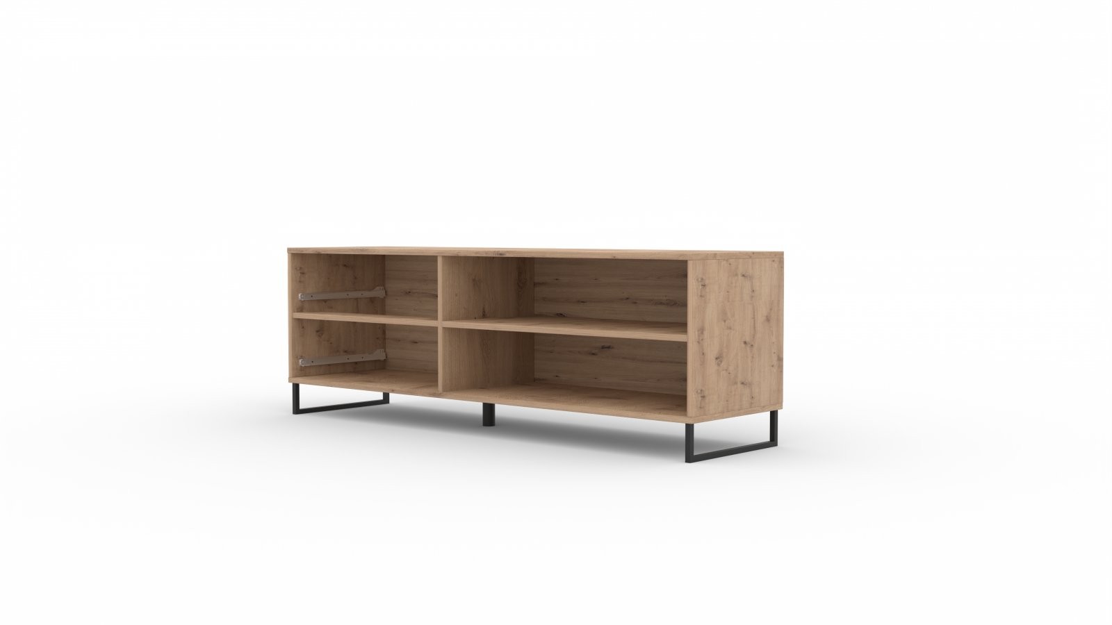TV omarica ARIA združuje preprostost, funkcionalnost in sodoben dizajn, zaradi česar je popolna izbira za vsak dnevni prostor. Njena elegantna kombinacija barv hrasta Artisan in črne barve se brezhibno prilega tako klasičnim kot sodobnim notranjim stilom.