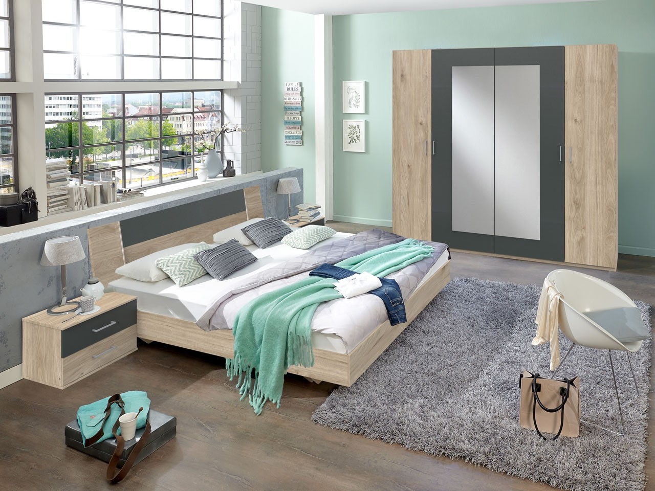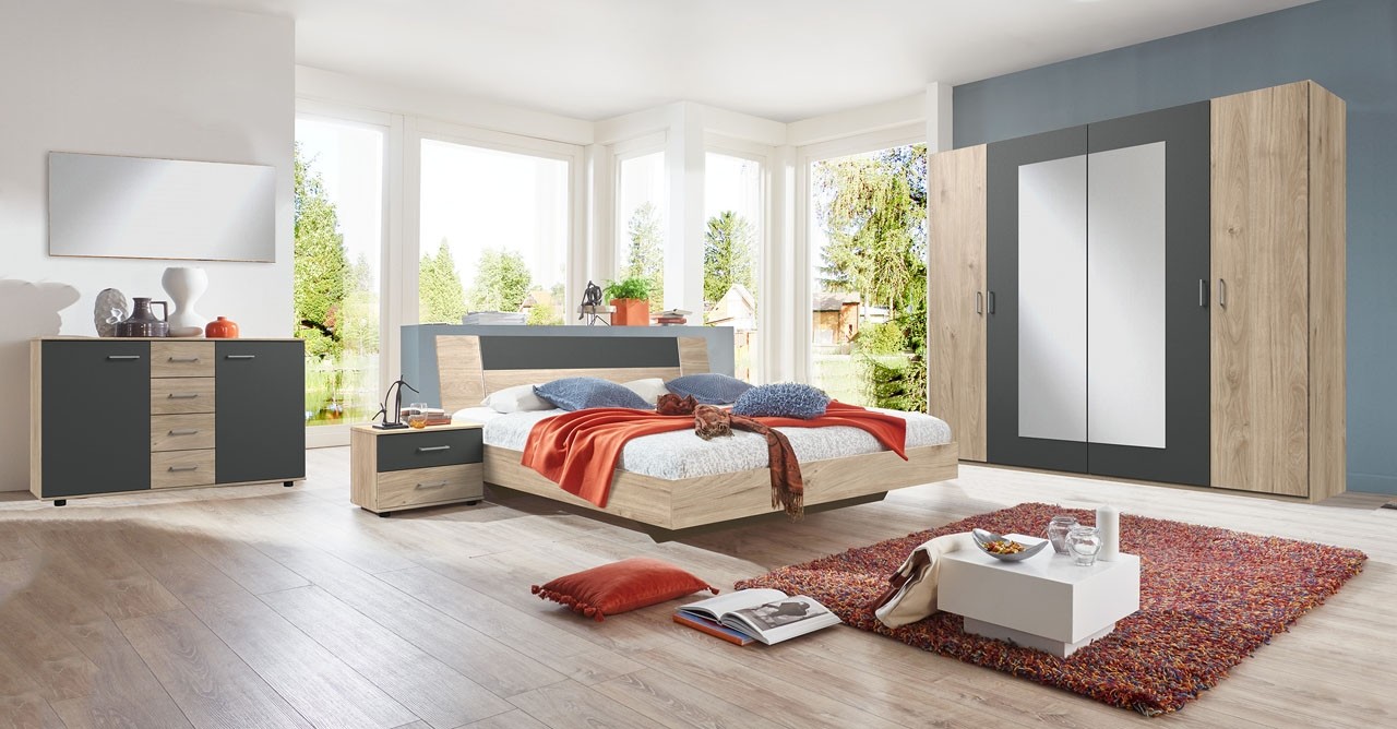 Če želite moderno in preprosto spalnico, potem je spalnica JENNY idealna izbira za vas! Ta sodoben sestav nemškega dizajna bo vse kar vaša spalnica potrebuje, saj je prostoren, funkcionalen in moderen. Moderna kombinacije hrasta in temno sive se bo odlično podala v vsako spalnico in je enostavna za kombiniranje z ostalimi barvami v prostoru.