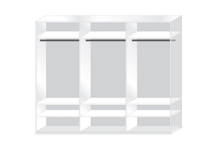 Spalnica Piano ima dve priročni nočni omarici, kjer imate lahko vse izdelke, katere želite imeti vedno pri roki. Vključena je izjemno prostorna garderobna omara z velikim ogledalom, ki ima v notranjosti kar tri palice za obešanje in 9 polic, zato bodo vaša oblačila, modni dodatki, posteljnina in ostali predmeti vedno skrbno pospravljeni in dobro organizirani. V kolikor želite še več funkcionalnosti lahko dokupite še dodatne elemente za garderobno omaro.