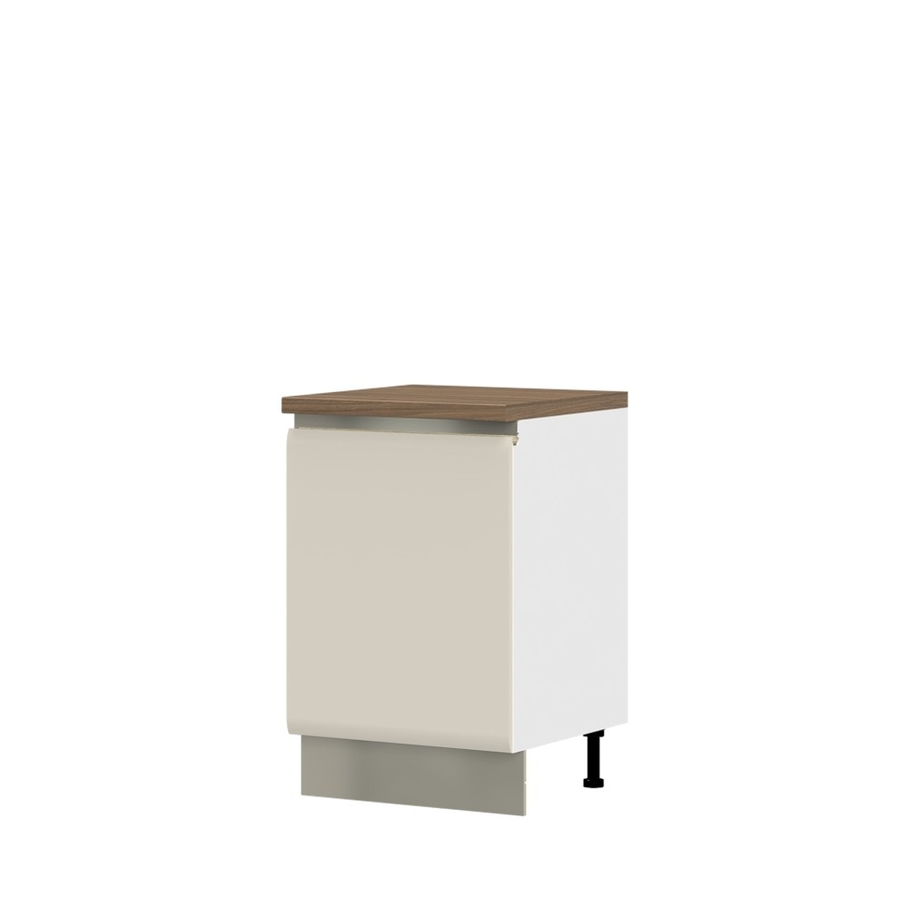 Spodnji element za kuhinjo INVICTUS je modernega izgleda in na voljo v kašmir mat lak barvi, ki je moderna in se odlično poda v kuhinje, ki potrebujejo pridih modernega in umirjenega stila. Vsebuje vratca za odpiranje in eno polico širine 60 cm, ki vam omogoča odlagani prostor za manjše kuhinjske pripomočke. Cokel, pult in profil za odpiranje vratc so vključeni v ceno.