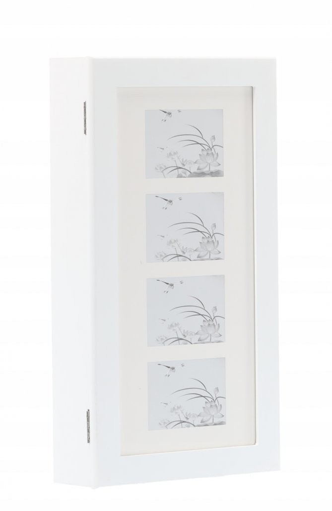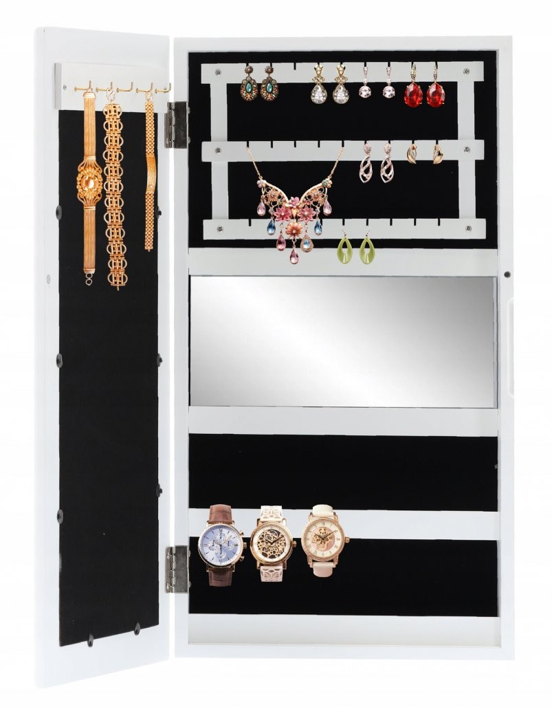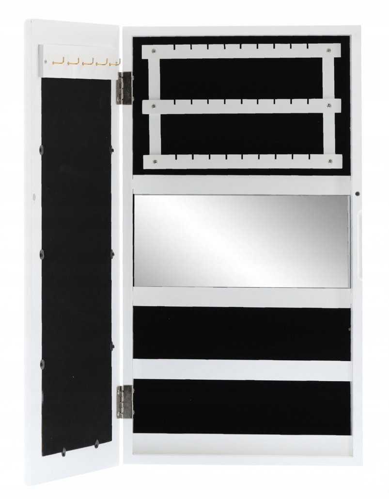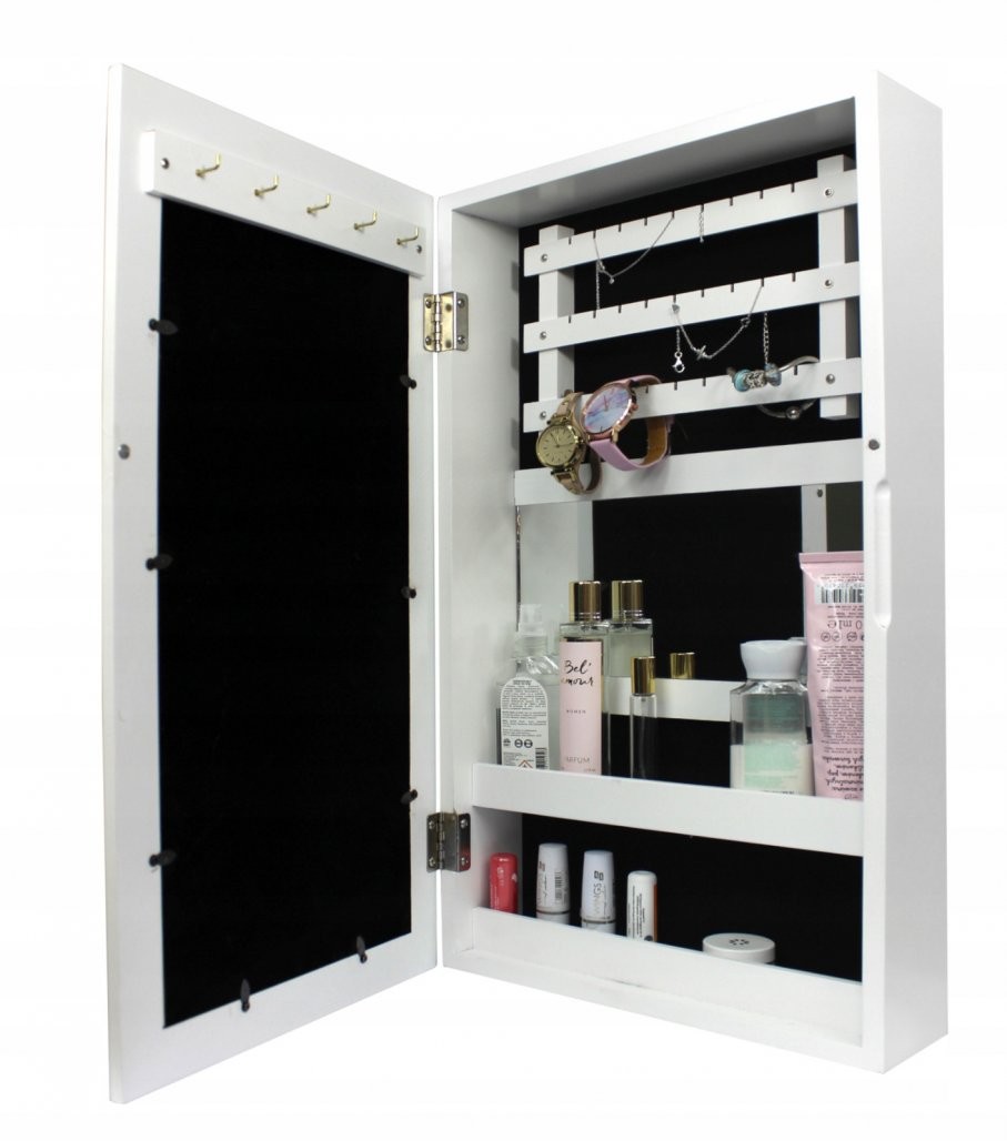 Stenska omarica Pilom za nakit z ogledalom (bela) je kompaktna rešitev za pregledno shranjevanje. Izdelava iz materiala MDF dopolnjuje zasnovo izdelka.