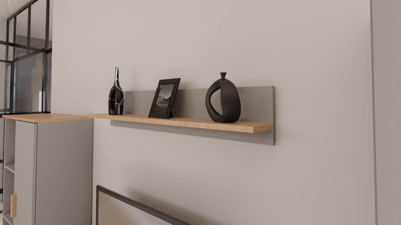 Stenska polica DENVER je modernega izgleda. Stenska polica je tudi zelo praktična, saj lahko na njo postavite najljubše knjige ali pa spominke, ki bodo vedno vidni. Na voljo je v kombinaciji sive barve in hrasta.