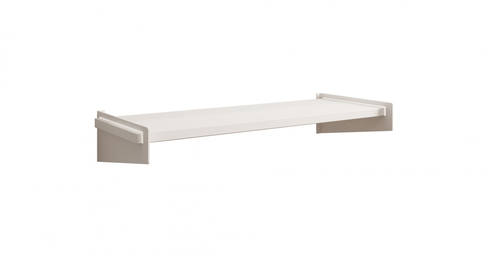 Zaobljena oblika police v kombinaciji s kovinskimi nosilci doda prostoru prefinjen značaj, medtem ko bogata izbira barv omogoča enostavno prilagajanje različnim notranjim stilom.