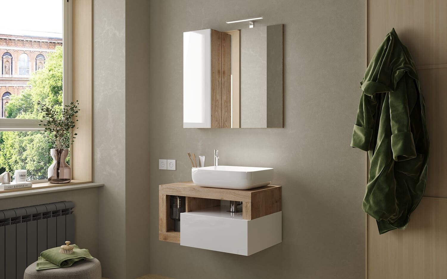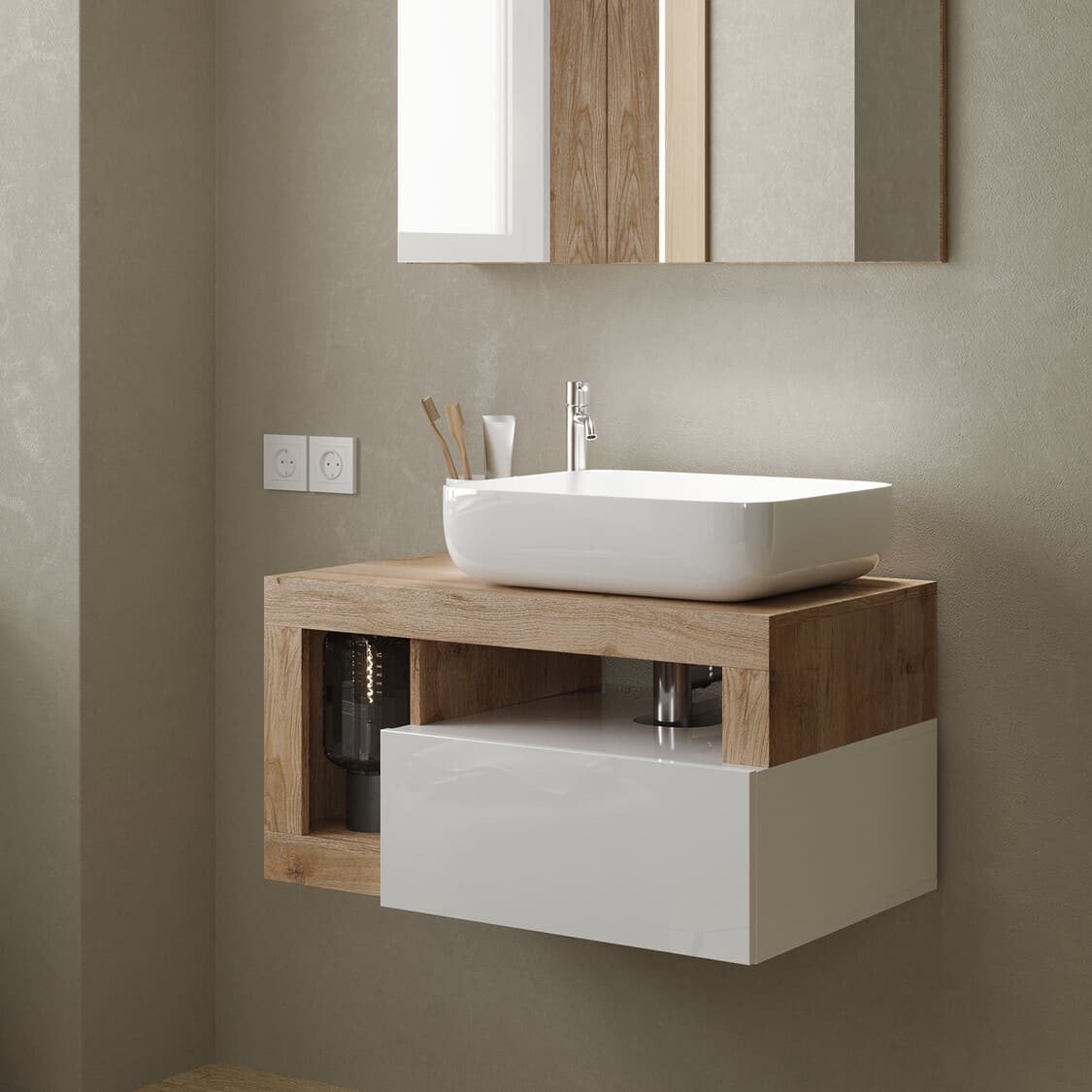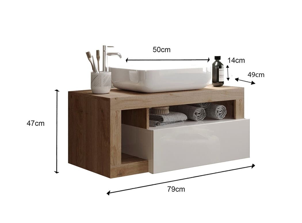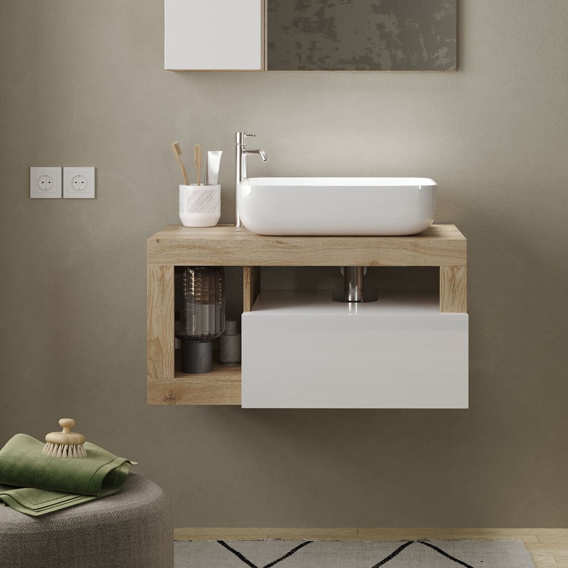 Stenski kopalniški blok z 1 predalom HAMBURG 439030K-S78 je popolna izbira za vse, ki iščejo funkcionalnost in eleganten dizajn. Njegova sodobna oblika in visok sijaj v beli barvi ustvarjata občutek prostornosti, medtem ko naravni videz hrasta dodaja toplino prostoru. Idealna rešitev za organizacijo kopalnice brez nepotrebne navlake.