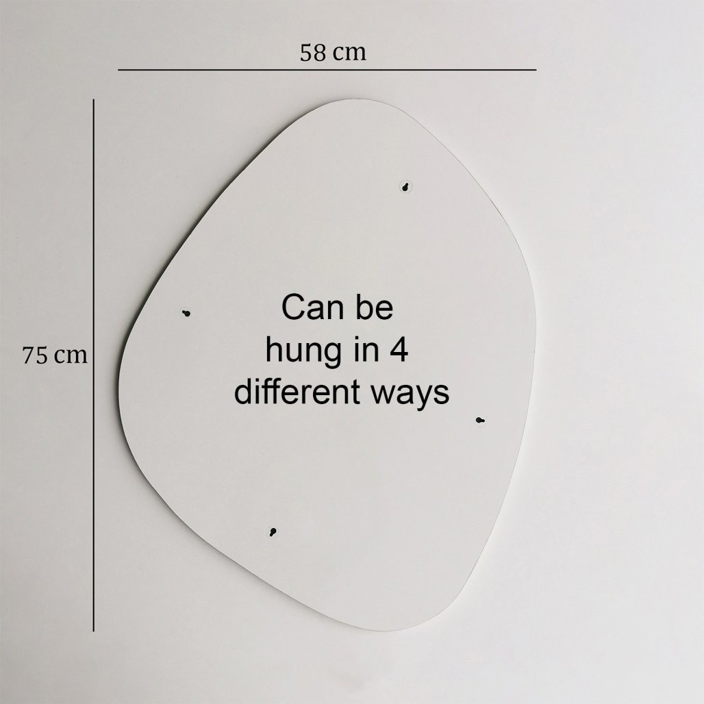 Z velikimi dimenzijami 90 cm v širino, 70 cm v višino in 3,2 cm v globino je to ogledalo kot nalašč za ustvarjanje iluzije večjega prostora. Njegova elegantna oblika in prozorna(-e) barva(-e) se brez težav ujemata s katerim koli dekorjem, zato je vsestranski dodatek za vaš dom ali pisarno.