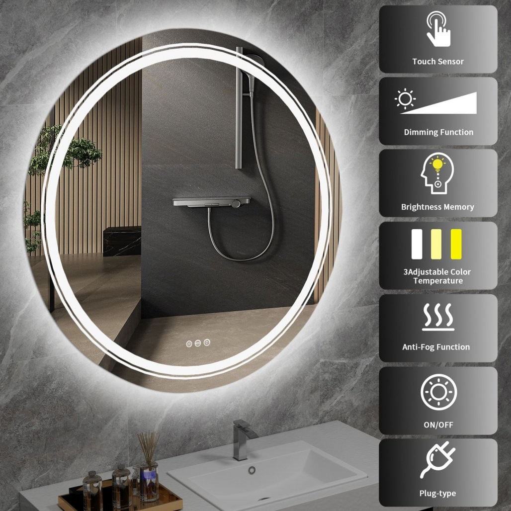 To ogledalo je zasnovano z mislijo na vaše udobje. Vključuje vgrajeno LED osvetlitev, ki zagotavlja optimalno svetlobo za ličenje ali britje, hkrati pa ustvarja prijetno vzdušje. Dodatna funkcija proti rošenju poskrbi, da površina ogledala ostane čista in prosta pare tudi po vročem tuširanju, kar vam prihrani čas in trud. Upravljanje z dotikom omogoča enostavno prilagajanje svetlosti in izbiro med hladno ali toplo svetlobo.