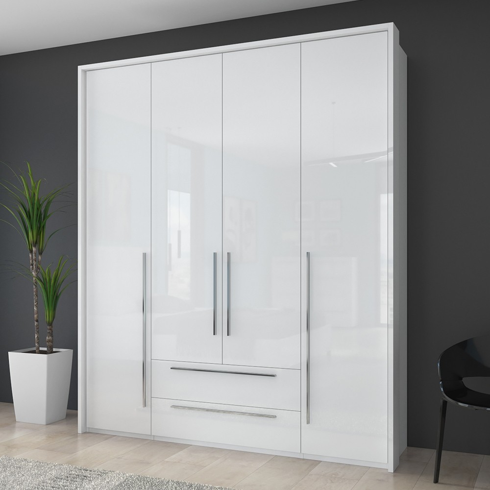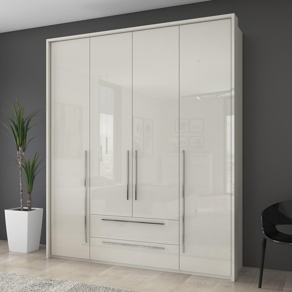 Štiridelna garderobna omara KALLA PIANO je modernega izgleda in na voljo v beli barvi visokega sijaja in bež barvi visokega sijaja. Omara nudi sedem polic, dva predala in tri obešalne palice, kar je več kot dovolj, da bo vaša spalnica vedno urejena in pospravljena. Kot dodatni atribut pa ima garderobna omara dekorativni okvir.