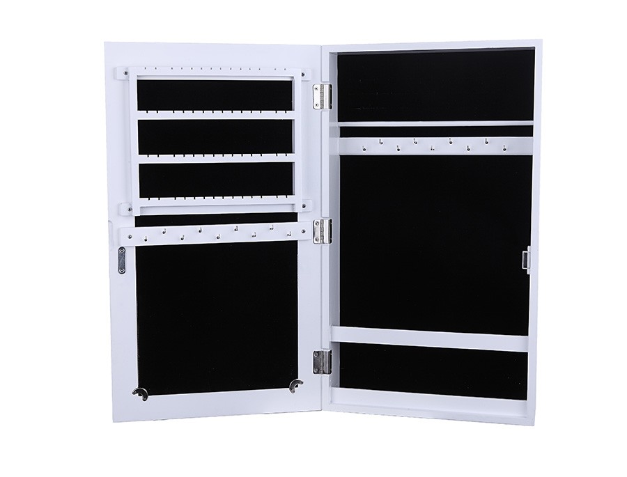 Stojalo za nakit LIJA z ogledalom je v beli mat barvi in je namenjena za shranjevanje vašega najljubšega nakita. S tem stojalom bo vaš nakit vedno zložen, viden in se ne bo nikoli izgubil. Stojalo je sestavljeno iz predalov in kljukic. V predale boste lahko shranili vaše prstane, ure, zapestnice. Na kljukicah pa bodo svoje mesto našle vaše verižice, uhani, ki bodo vedno na preglednem mestu. Na sprednji strani stojala se nahaja ogledalo. Maksimalna obremenjenost stojala je 5 kg.