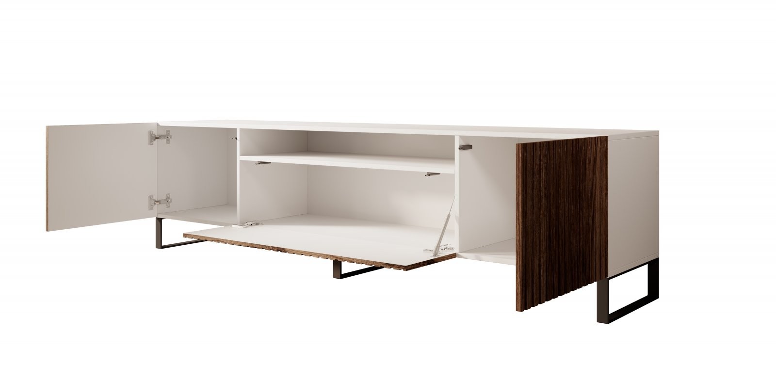 Stoječa TV omarica Miro je popolna izbira za sodobno dnevno sobo, saj združuje eleganco, funkcionalnost in prilagodljivost. Na voljo je v dveh barvnih kombinacijah, ki se odlično podajo različnim slogom notranje opreme.