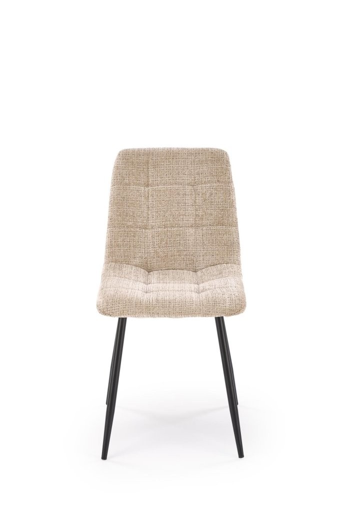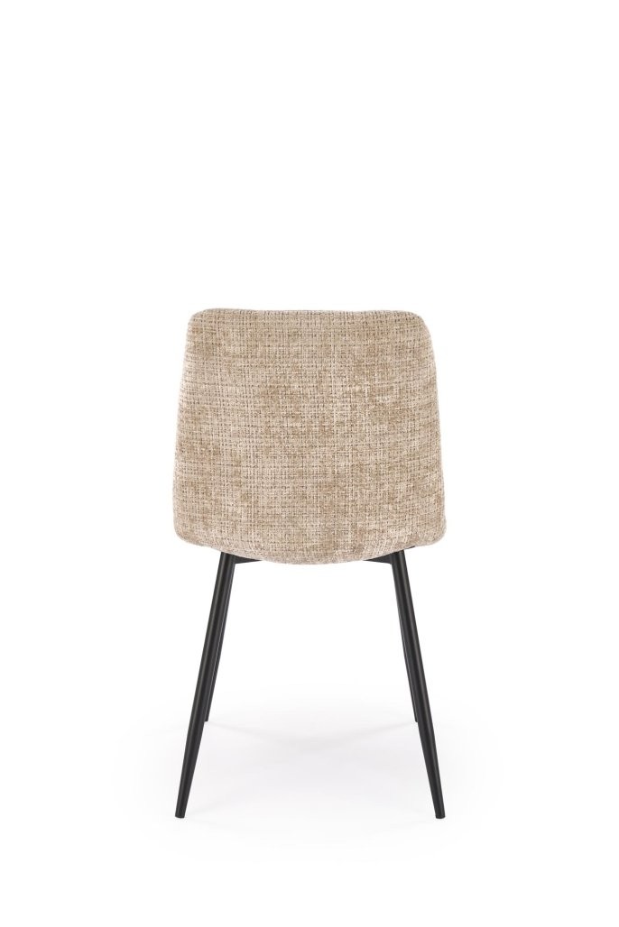 Stol Belor v skandinavskem slogu z mehkim oblazinjenjem iz žameta in črnim kovinskim okvirjem. Na voljo v bež, črna in siva barvi.