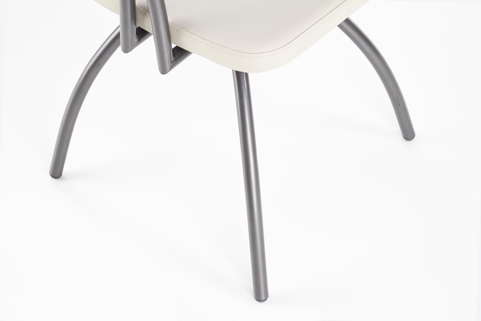Stol Bilo z oblazinjenjem v svetlo sivem umetnem usnju in kromiranimi nogami je idealna izbira za klasične ali moderne prostore. Višina sedeža 46 cm.