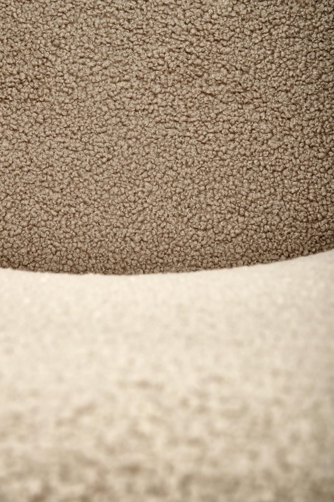 Stol Bralin, na voljo v kapučino in sivi barvi, z vrtljivim sedežem in bouclé tkanino, prinaša eleganco in udobje v sodobnem stilu.