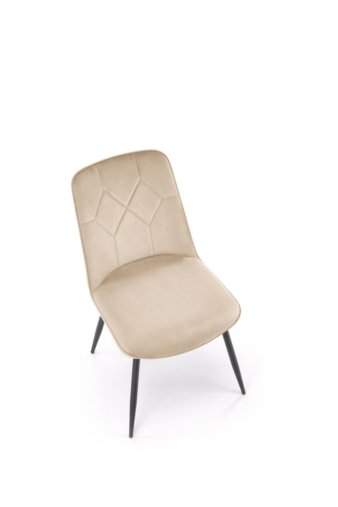 Stol Celor v klasičnem in modernem stilu, oblazinjen v žametu v bež barvi. Kovinski okvir v črni barvi dodaja eleganco, idealno za sodobne interierje.